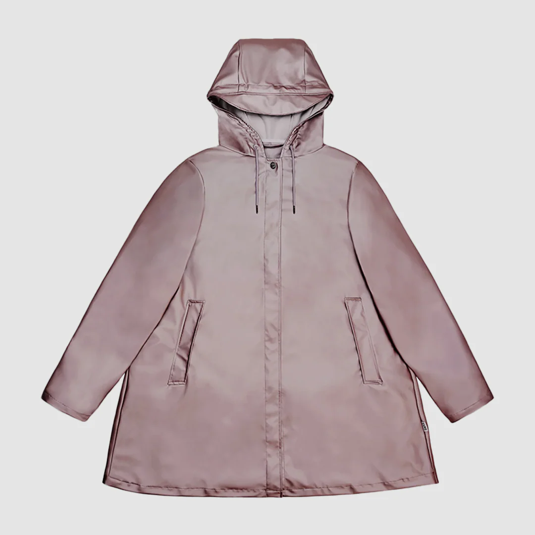 Automne Hiver 24 – A-Line W Jacket, finition douce au toucher, légère, drapé élégant. Capuche avec cordon de serrage, casquette intégrée, deux poches latérales, poignets avec boutons-pression ajustables. Veste de pluie complétée par une patte sur le devant avec boutons-pression invisibles. Oeillets sous les bras assurent une ventilation. – 100 % PES (Polyester)