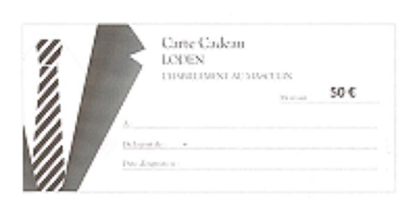 Carte Cadeau D’une valeur de 50€ valable sur toute la boutique. Une carte cadeau vous sera renvoyée avec un ticket code barre servant de titre de paiement. Ce titre de paiement sera valable 6 mois à compter de la date indiqué sur le ticket code barre