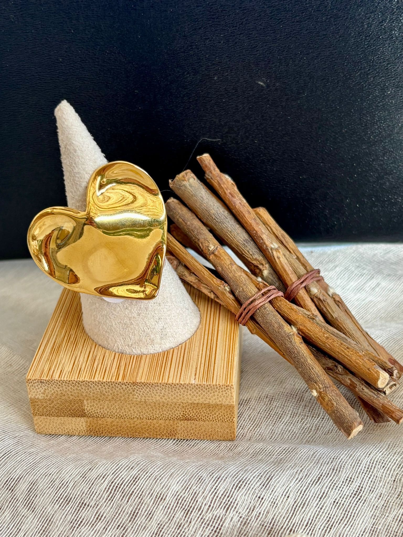 Bague en acier inoxydable réglable avec coeur