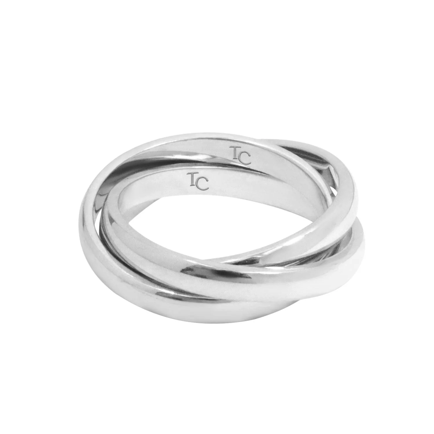 Polyvalente et intemporelle, cette bague se compose de trois anneaux entrelacés qui s’unissent avec élégance et fluidité. Cette bague unique offre l’effet d’une superposition en une seule bague, mais peut tout aussi bien être agencée à vos autres bagues préférées. Acier Inoxydable