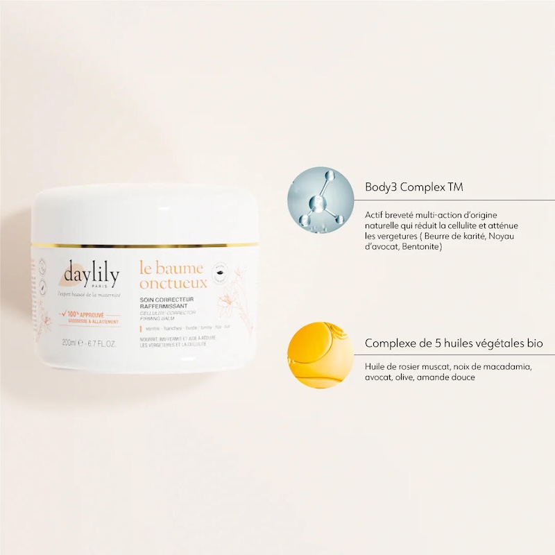 Le soin incontournable dans votre routine. Il nourrit, hydrate et raffermit votre peau. Il permet également d’atténuer les vergetures récentes et de corriger la cellulite. Imaginé initialement pour répondre efficacement aux besoins de la jeune maman, ce soin raffermissant ne contient aucun ingrédient controversé ou non recommandé pendant la grossesse ni l’allaitement. Il peut ainsi être utilisé aussi en post-partum pour les mêmes bénéfices et pour raffermir la peau. En utilisant ce baume, vous bénéficiez d’une hydratation intense qui aide à maintenir l’élasticité de la peau. Les ingrédients tels que le Body3complex et les huiles végétales contenus dans la formule nourrissent…