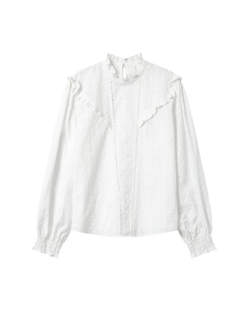 La blouse en coton SÉDUISANTE est une pièce féminine et élégante sublimée par des détails soignés. Les volants sur le devant et les poignets smockés dessinent une silhouette classique et intemporelle. Le modèle est rehaussé par une encolure ronde et une ouverture en goutte boutonnée au dos. 100% Coton