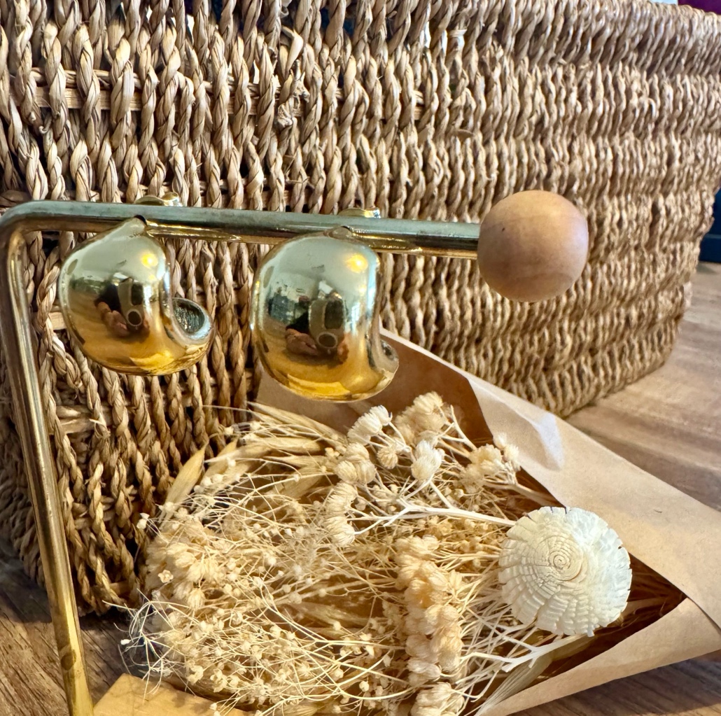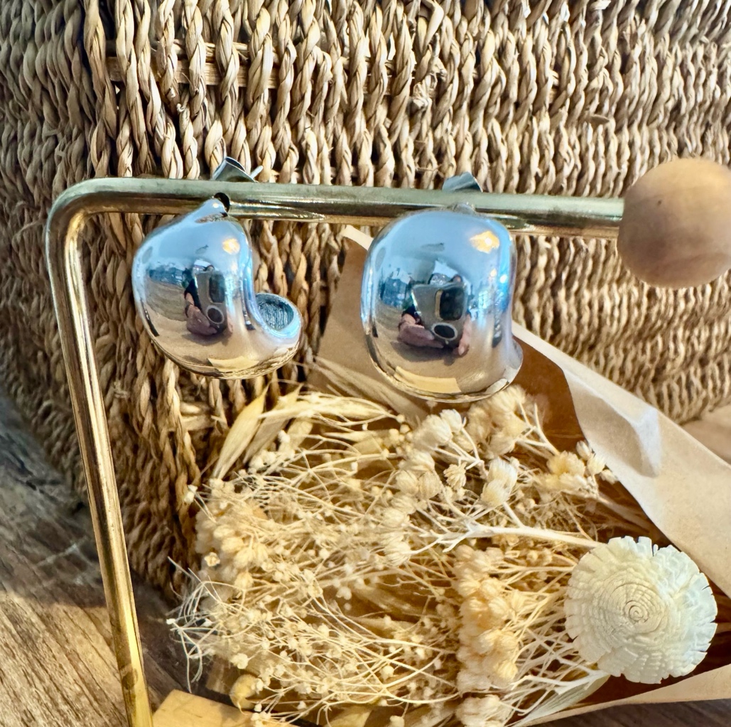 Boucle d’orreille en acier inoxydable de forme boule arrondi. Fermoir papillon + plastic