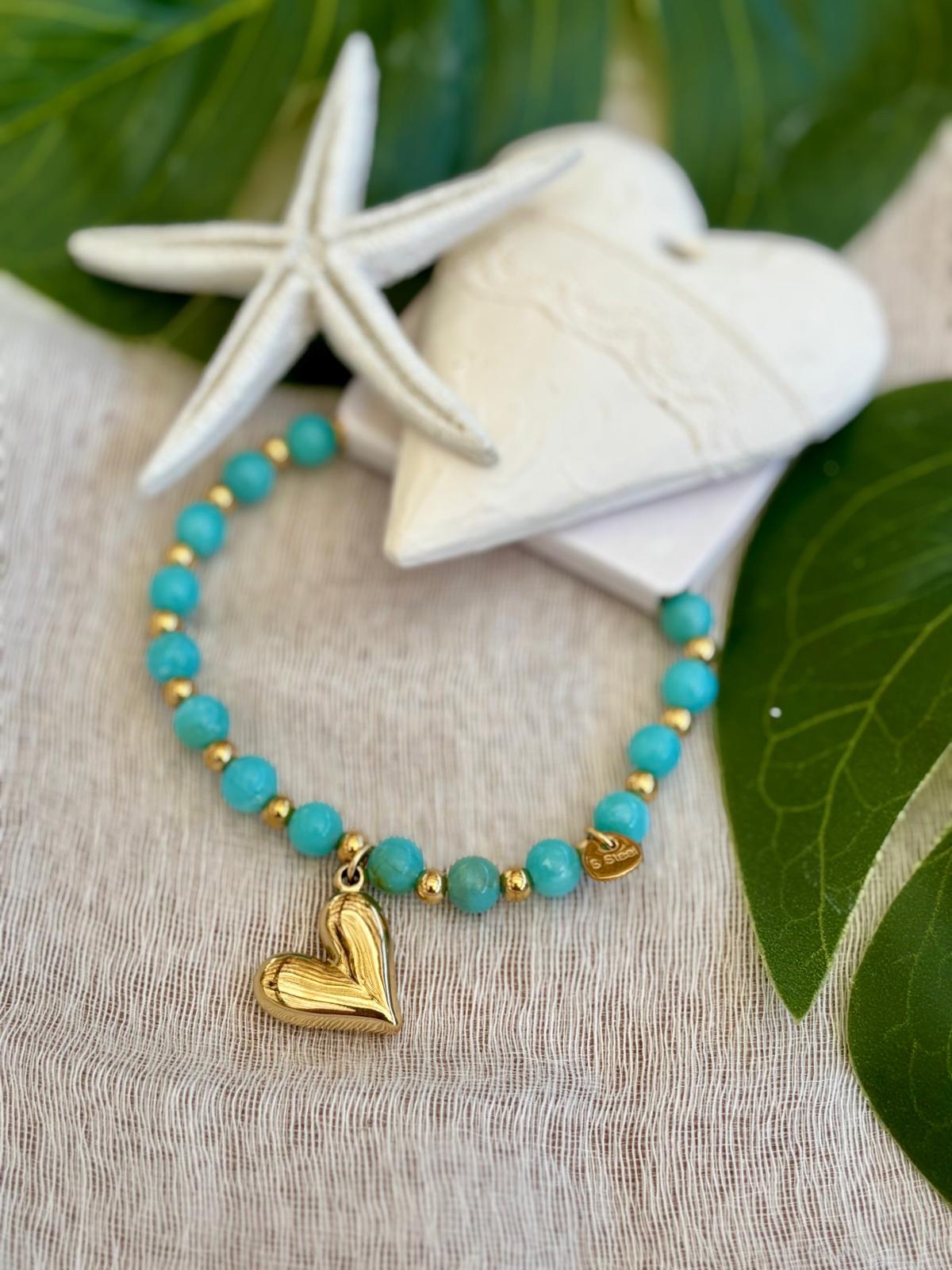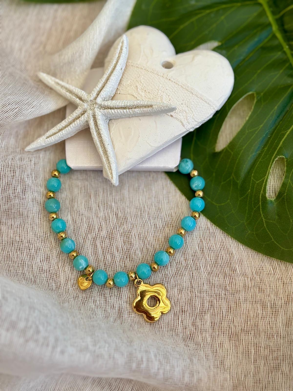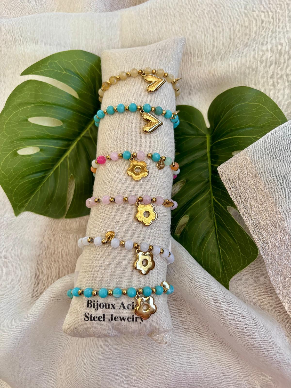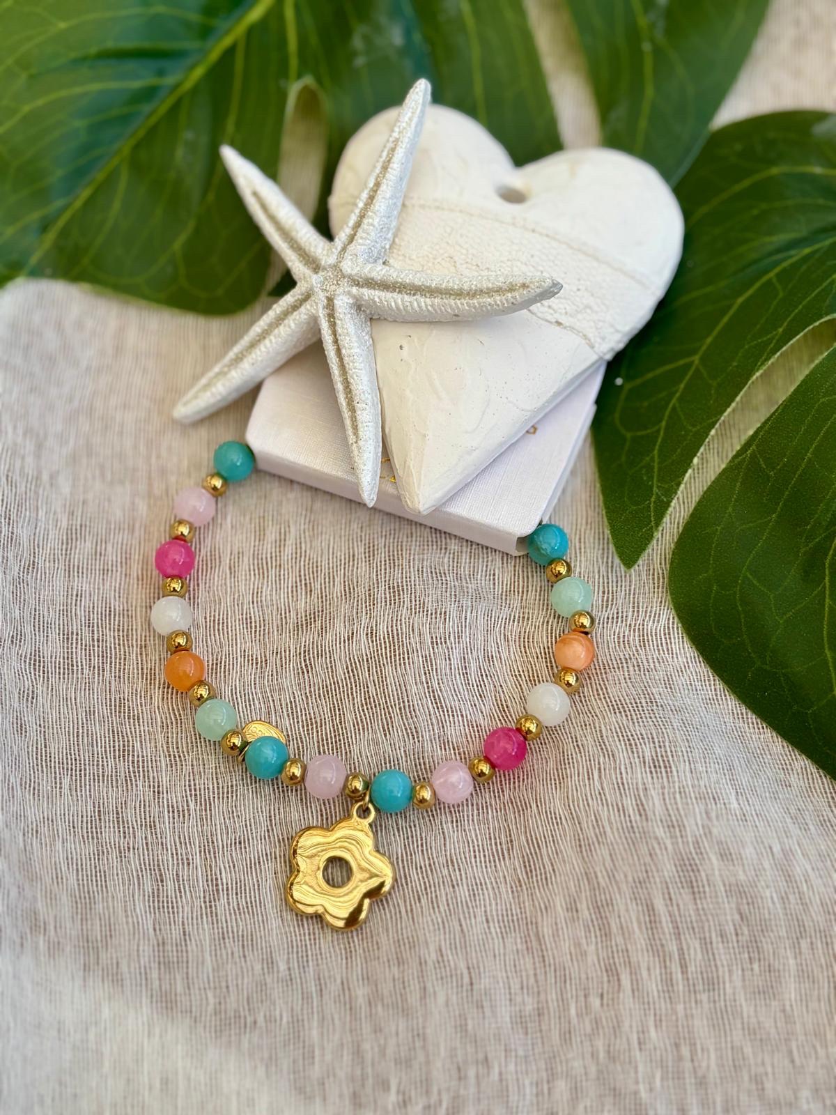Bracelet elastique avec perles de couleurs et pampille