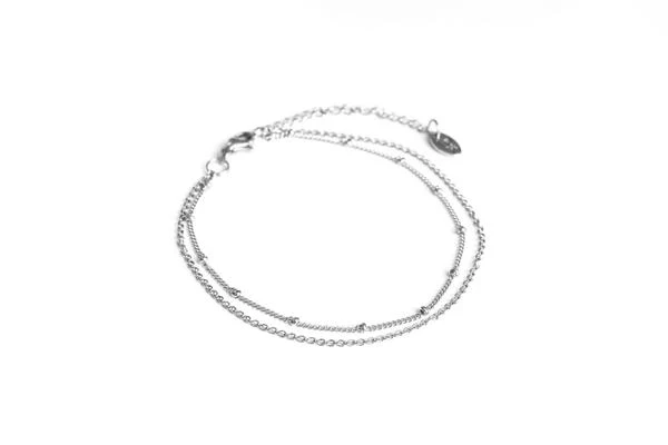 Le bracelet de cheville Bondi comporte deux chaînes en acier inxoydable pour un look boho chic qui s’agencera aux tenues de ville comme de plage.