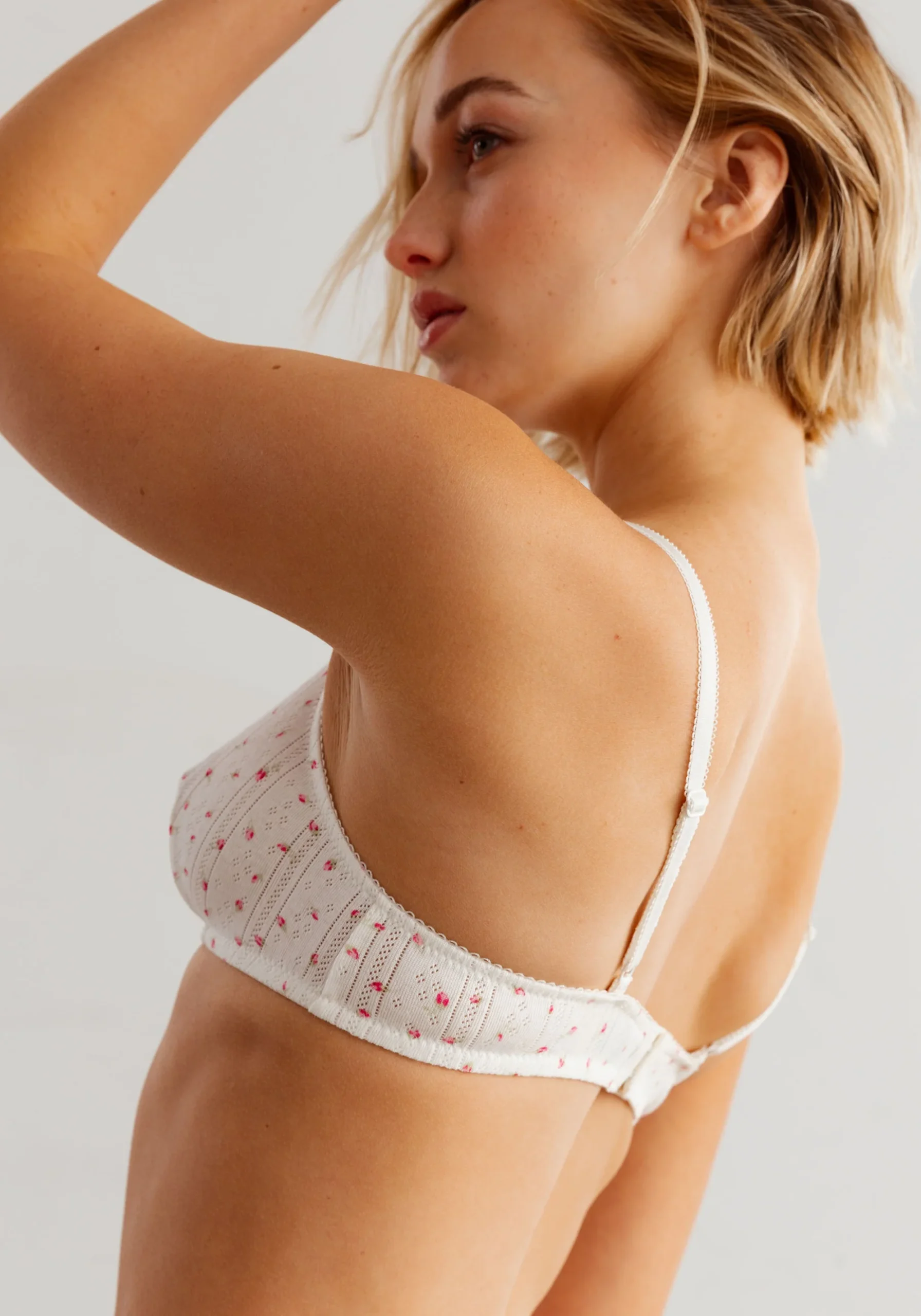 Délicate. rêveuse. divine. la rosette délicate associée au tissu coton pointelle doux et la bordure en picots rend cette bralette tout simplement impossible à résister.