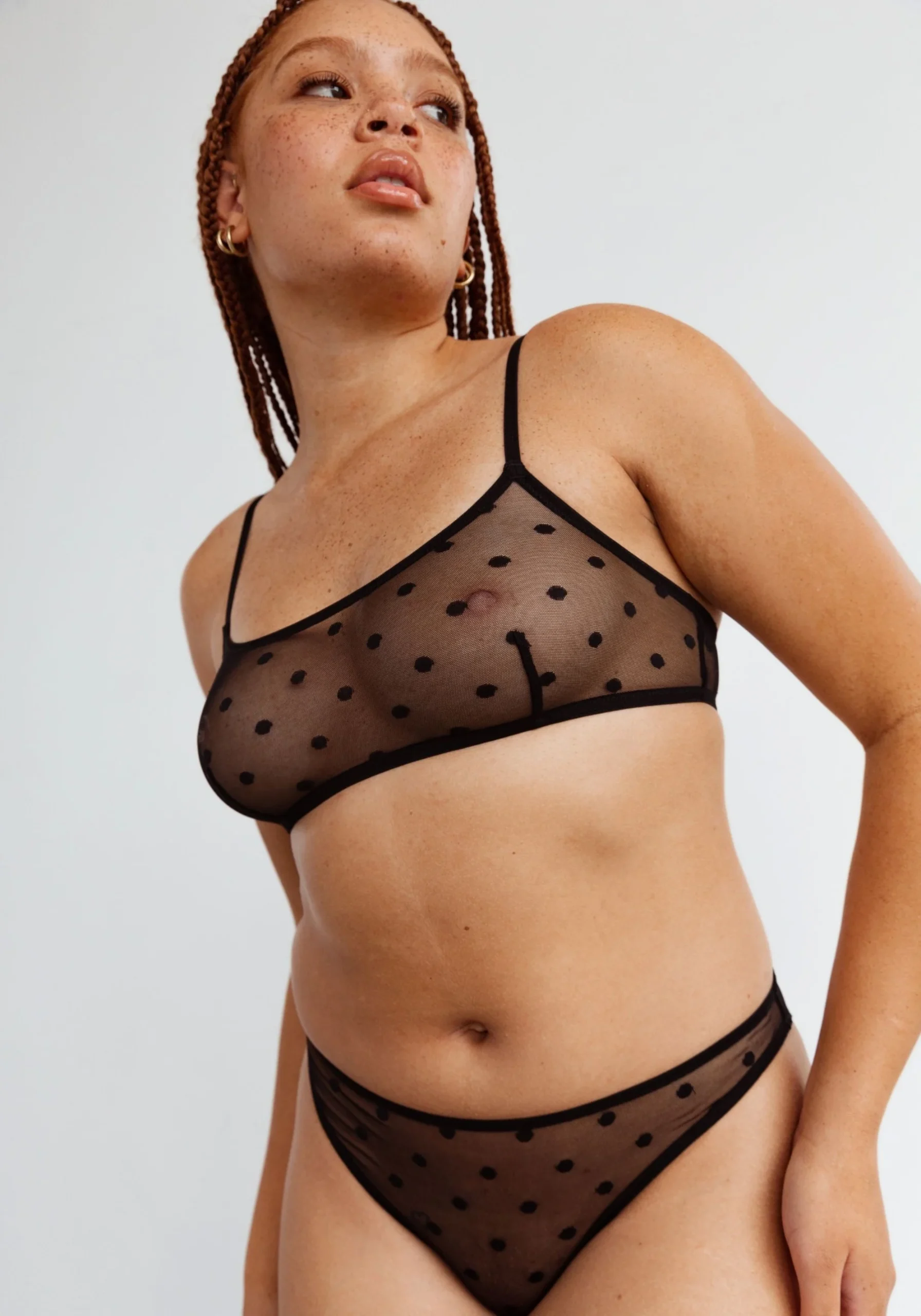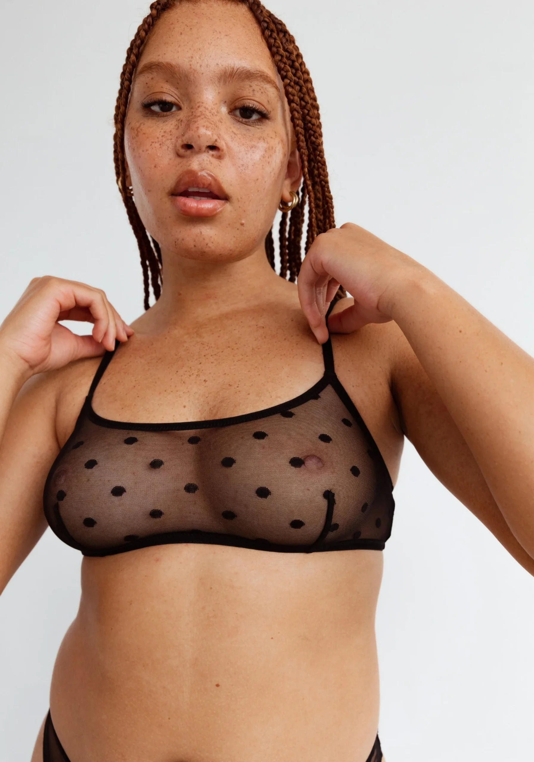 L’encolure dégagée et la maille extensible à pois font de cette bralette un véritable incontournable.
