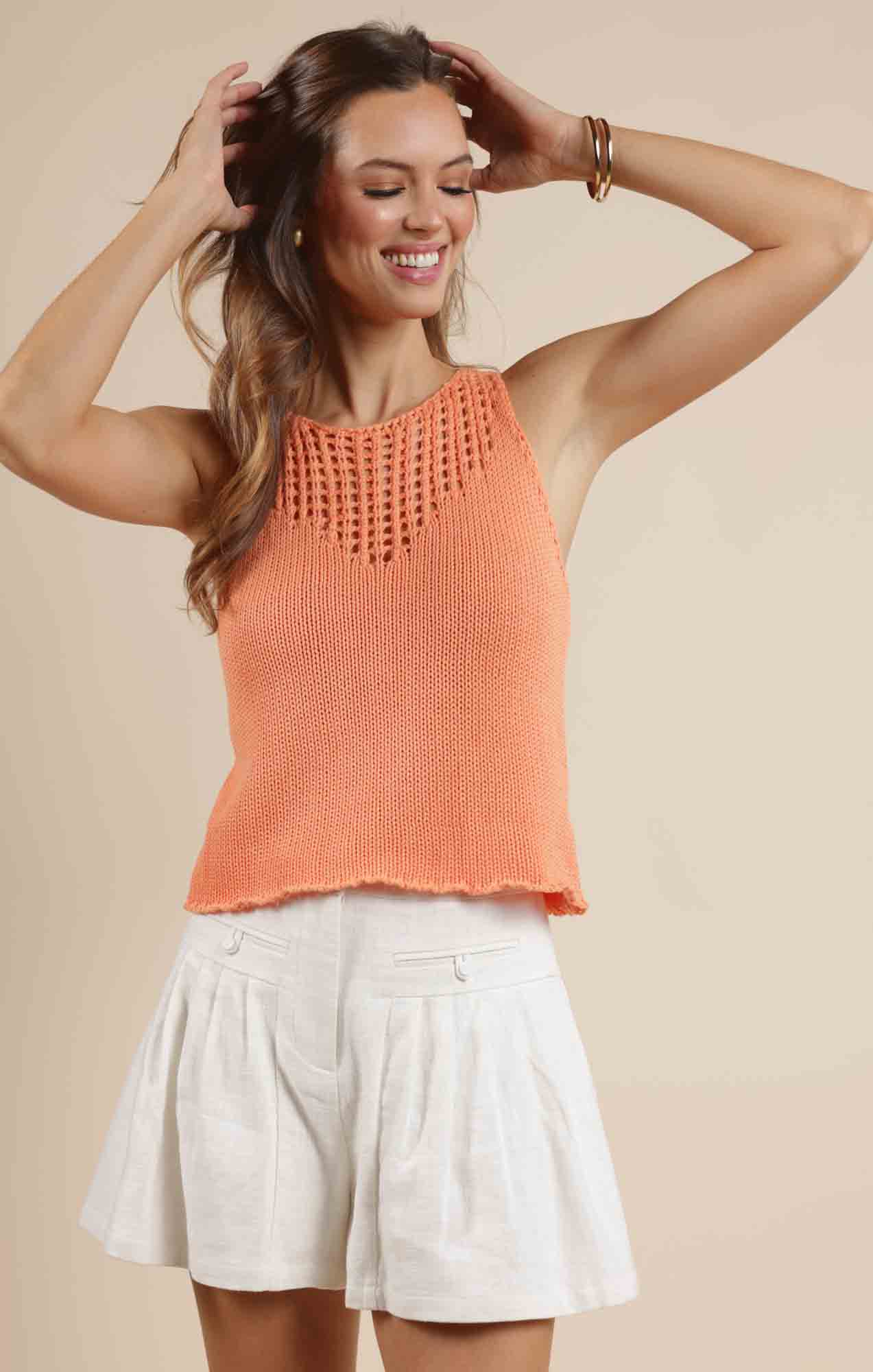 Cette camisole en crochet « The Breeze » offre une silhouette décontractée avec sa coupe droite et boxy. Parfaite pour les journées chaudes, elle combine le charme artisanal du crochet avec un style contemporain facile à porter. Superposez-la ou portez-la seule pour un look estival élégant et aéré.