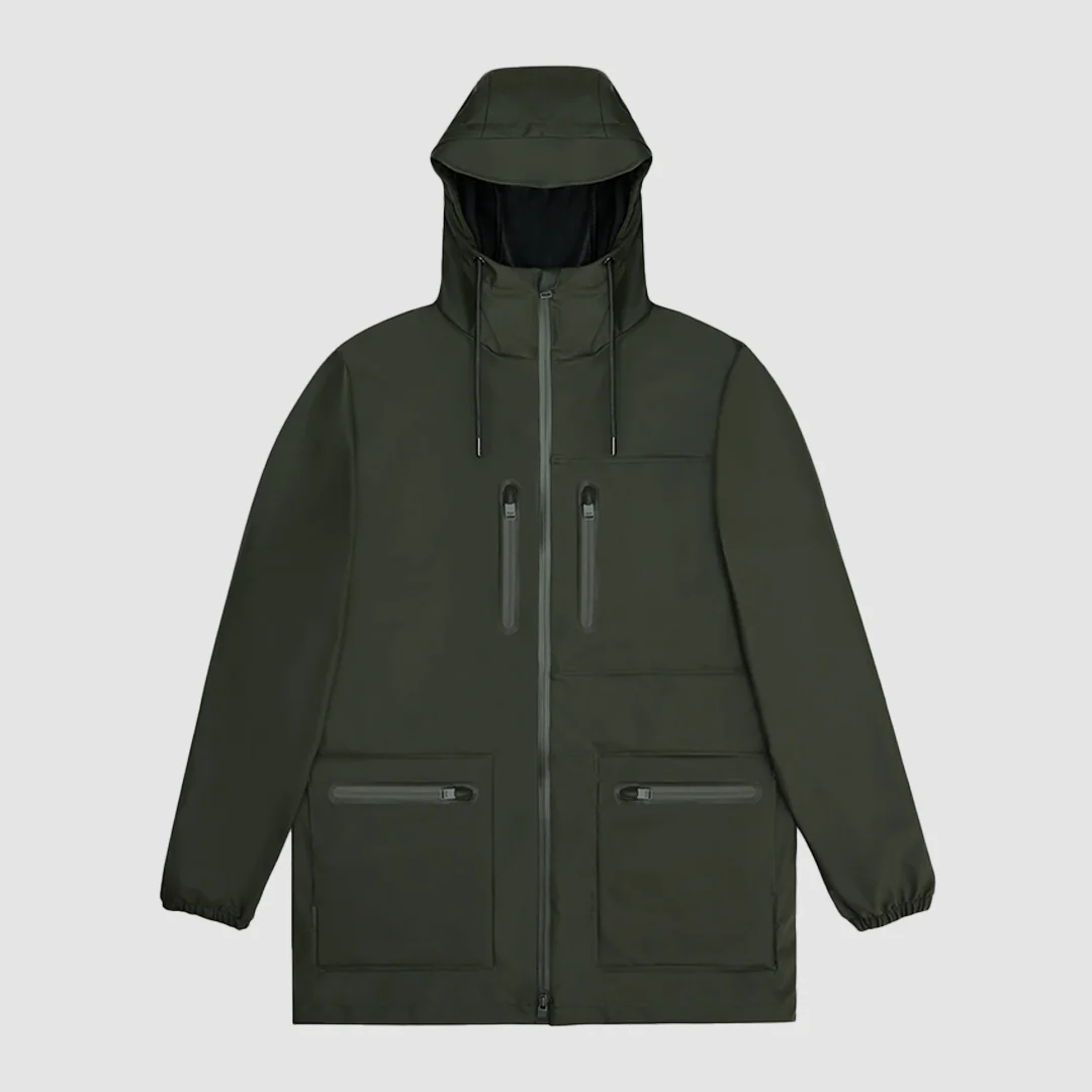 Cargo Long Jacket, veste de pluie unisexe et moderne. Design élégant, fonctionnel pour une silhouette minimaliste.