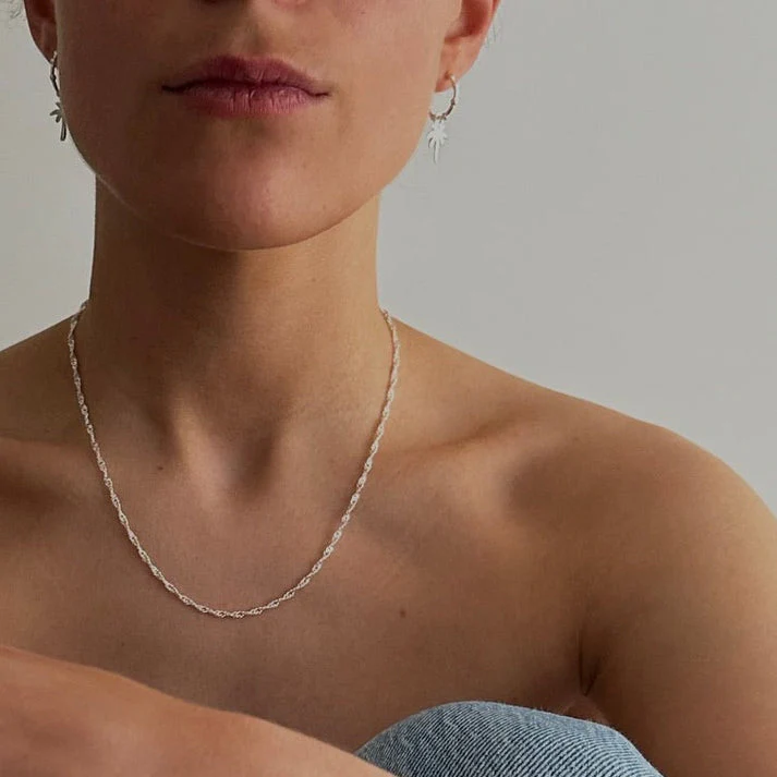 Du style « singapour », cette chaîne est joliement torsadée et tressée, ce qui la distingue de toutes les autres. Argent 925 Résistant à l’eau