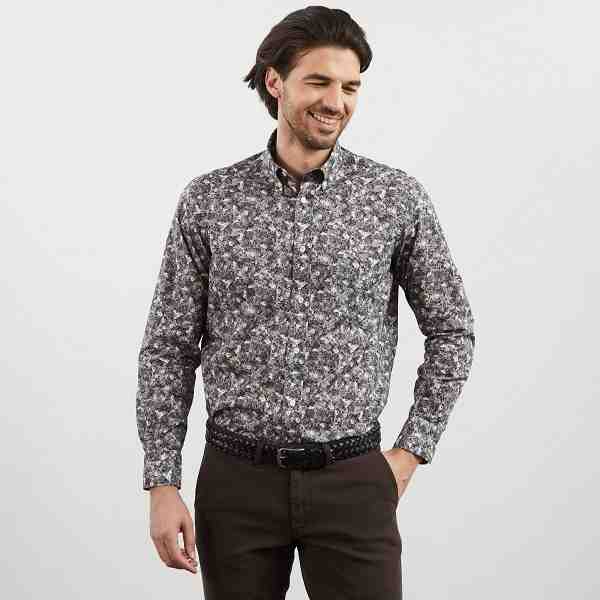Chemise bleue EDEN PARK en coton à motif exotique 047H