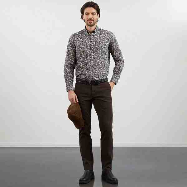 Conçue en tissu de fabrication italienne, cette chemise droite présente un bel imprimé fleuri frais et raffiné. On distingue à peine la poche plaquée sur la poitrine et son nœud papillon brodé En coton Regular Fit Tissu de fabrication italienne Col pointes boutonnées Boutons ovales siglés Poche plaquée poitrine avec logo nœud papillon brodé Plis d’aisance au dos Base arrondie. 100% COTON Lavage machine 30°C sur l’envers Laver avec des couleurs similaires Ne pas laisser tremper Risque de dégorgement Ne pas blanchir Séchage machine interdit Repassage fer moyen Nettoyage à sec interdit Nettoyage professionnel à l’eau interdit