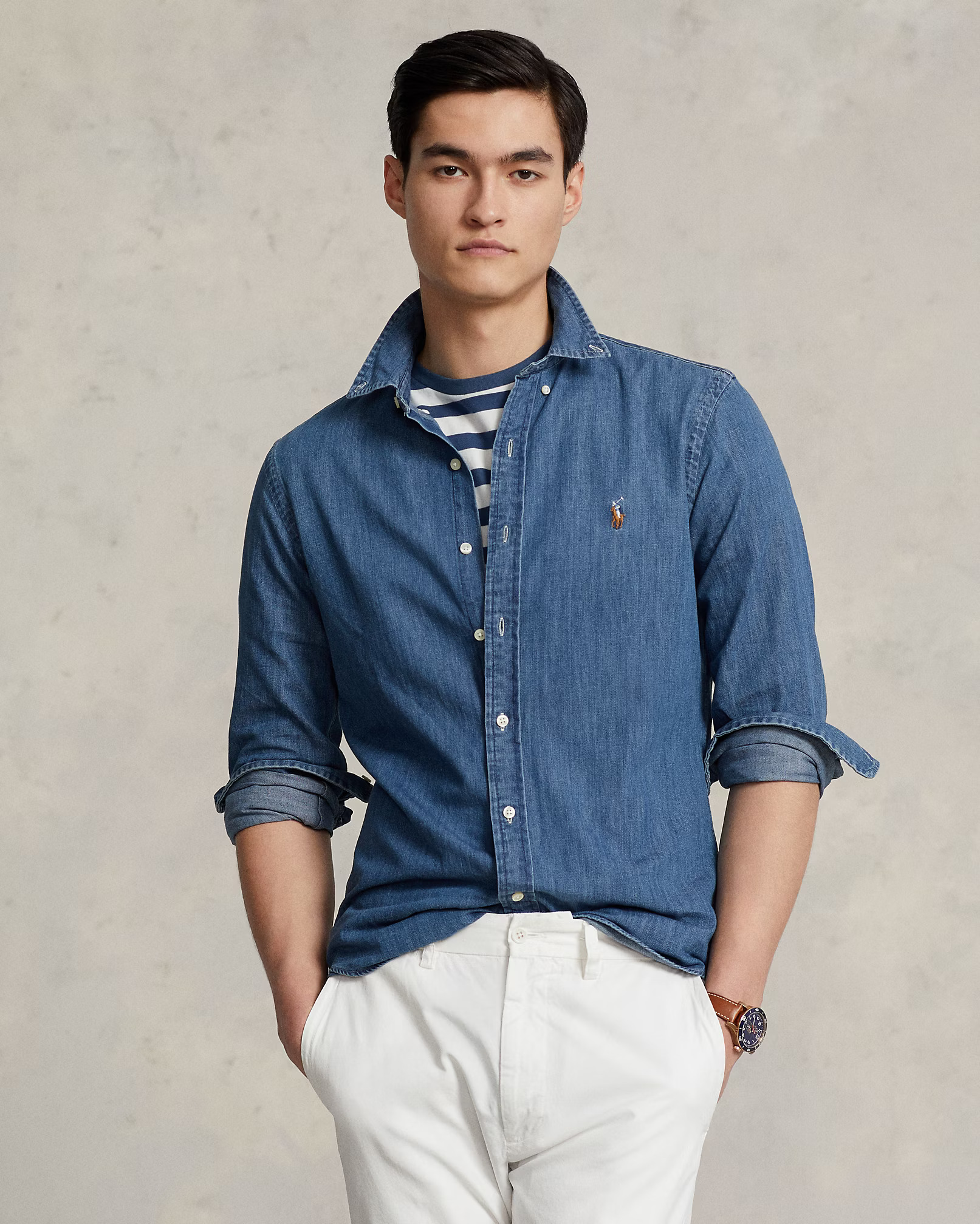 Cette chemise Oxford, à l’origine de la marque Ralph Lauren, est aujourd’hui devenue un modèle incontournable du look Polo. M. Lauren ne cesse de décliner sa chemise emblématique, dont cette version cintrée ornée de notre poney distinctif. Détails Coupe cintrée : coupe près du corps avec manches ajustées et emmanchures hautes ; taille 13,3 cm plus cintrée que notre coupe classique. Taille M : longueur de corps arrière de 78,7 cm, épaules de 45,7 cm, tour de poitrine de 105,4 cm et longueur de manche de 87,6 cm. La longueur de manche est calculée depuis le milieu de la nuque et varie de 2,5 cm d’une taille à l’autre. Col…