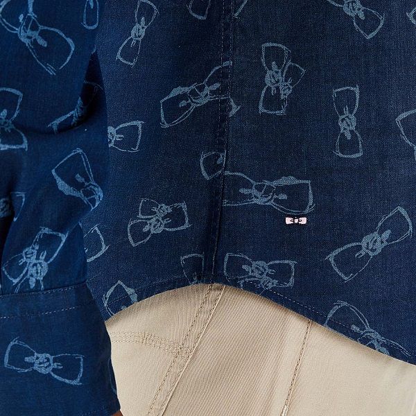 Un imprimé nœud papillons stylisé habille cette chemise décontractée conçue en chambray de coton de qualité. Légère et agréable à porter, elle est munie d’une poche poitrine et d’un ourlet arrondi. Élégante, confortable et originale, elle fera équipe avec tous vos jeans de saison. 100 % chambray de coton Slim fit Imprimé Eden Park exclusif Poche plaquée poitrine Boutons ovales inspirés du ballon de rugby Logo nœud papillon rose brodé bas de vêtement.