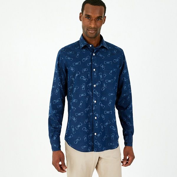 Chemise bleue EDEN PARK en coton à motif exotique 047H