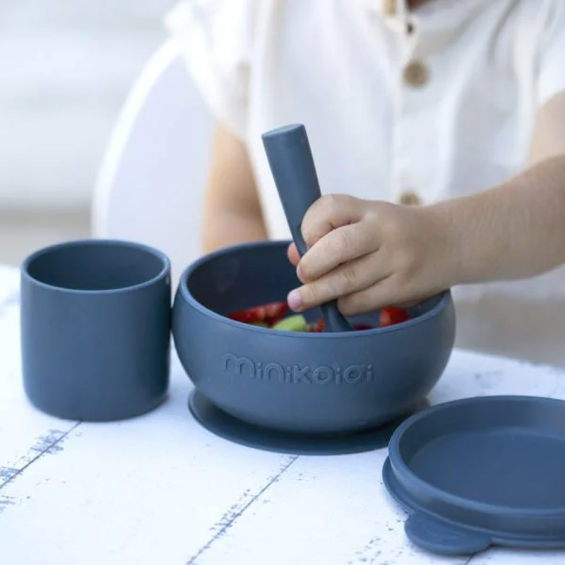 Un coffret premiers repas idéal pour offrir ! Ce joli coffret repas est composé d’un bol en silicone avec base anti-dérapante et son couvercle (pour garder le repas bien au chaud ou conserver les aliments au réfrigérateur), une cuillère en silicone pour aider bébé à développer sa motricité fine et un gobelet parfaitement adapté pour les petites mains. Facile à nettoyer, le bol passe au four (max. 200°C) et au four micro-ondes (sans le couvercle). Liste de naissance : pour constituer votre propre liste d’articles avant de passer à la boutique de Dijon, ou bien pour préparer une liste de…