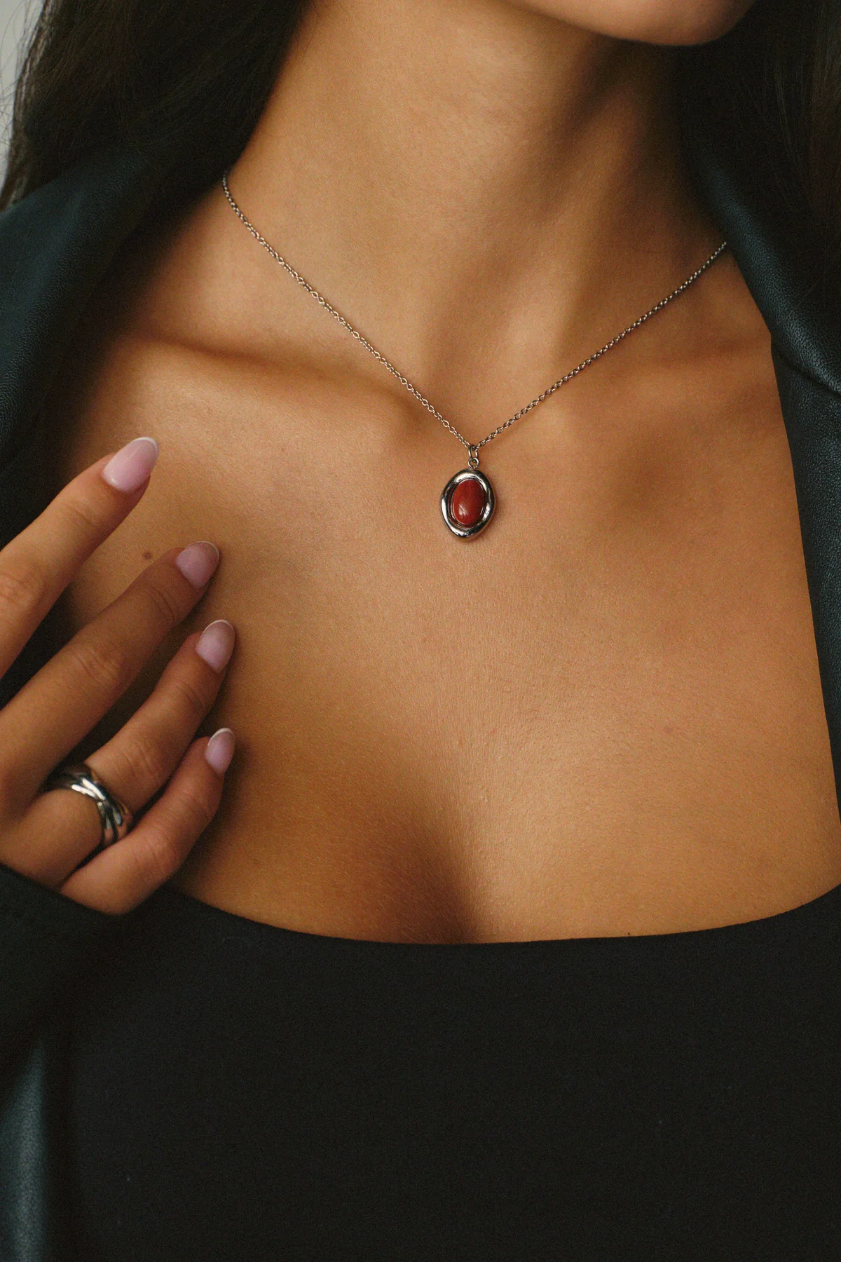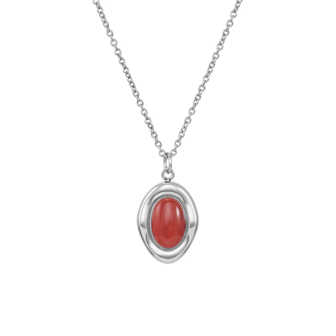 Le rouge est LA couleur du moment et le Collier Bordeaux est parfait pour adopter la tendance. Son pendentif en forme organique est rehaussé d’une pierre de jaspe rouge se mariant à merveille à sa chaîne fine et simple.