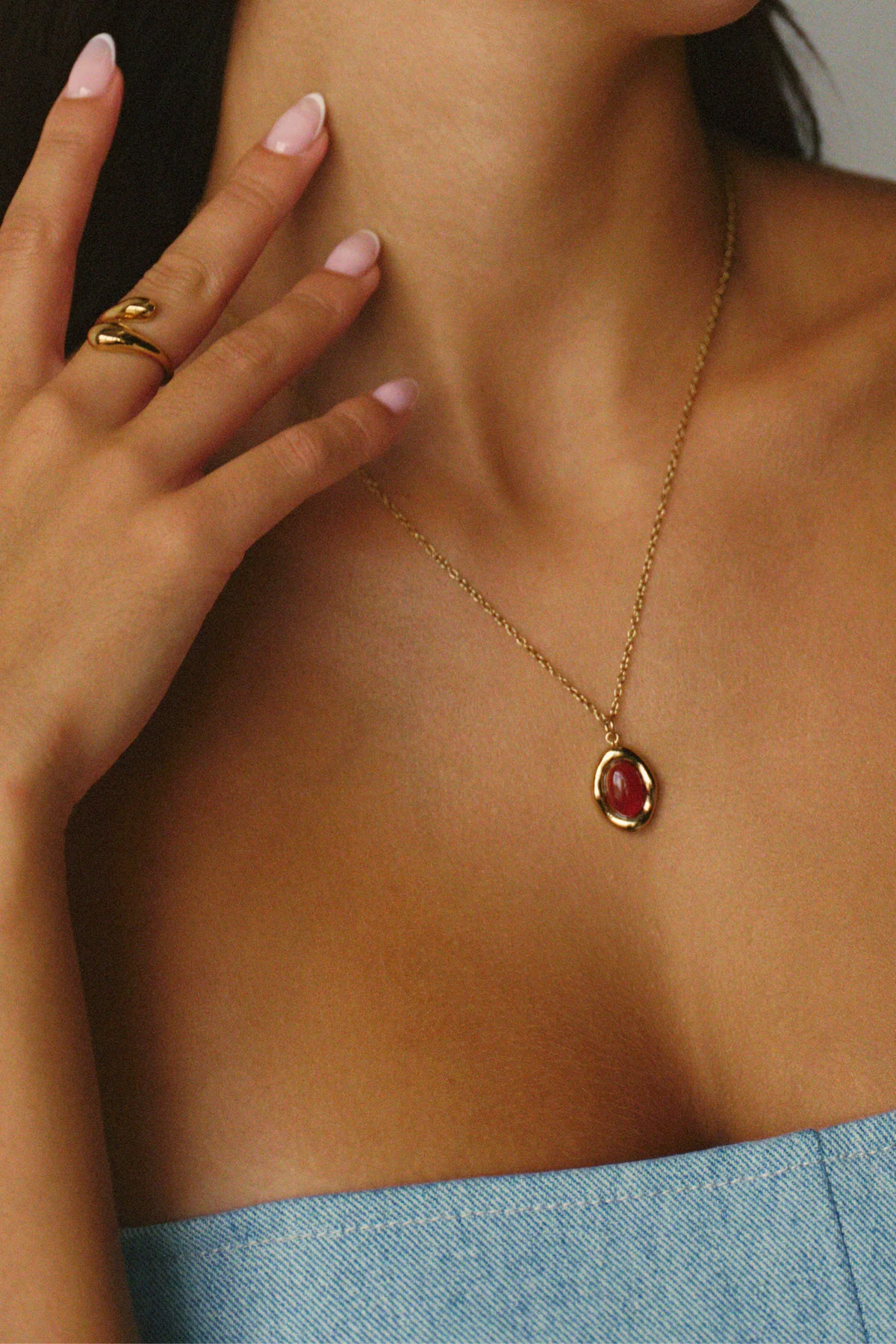 Le rouge est LA couleur du moment et le Collier Bordeaux est parfait pour adopter la tendance. Son pendentif en forme organique est rehaussé d’une pierre de jaspe rouge se mariant à merveille à sa chaîne fine et simple.