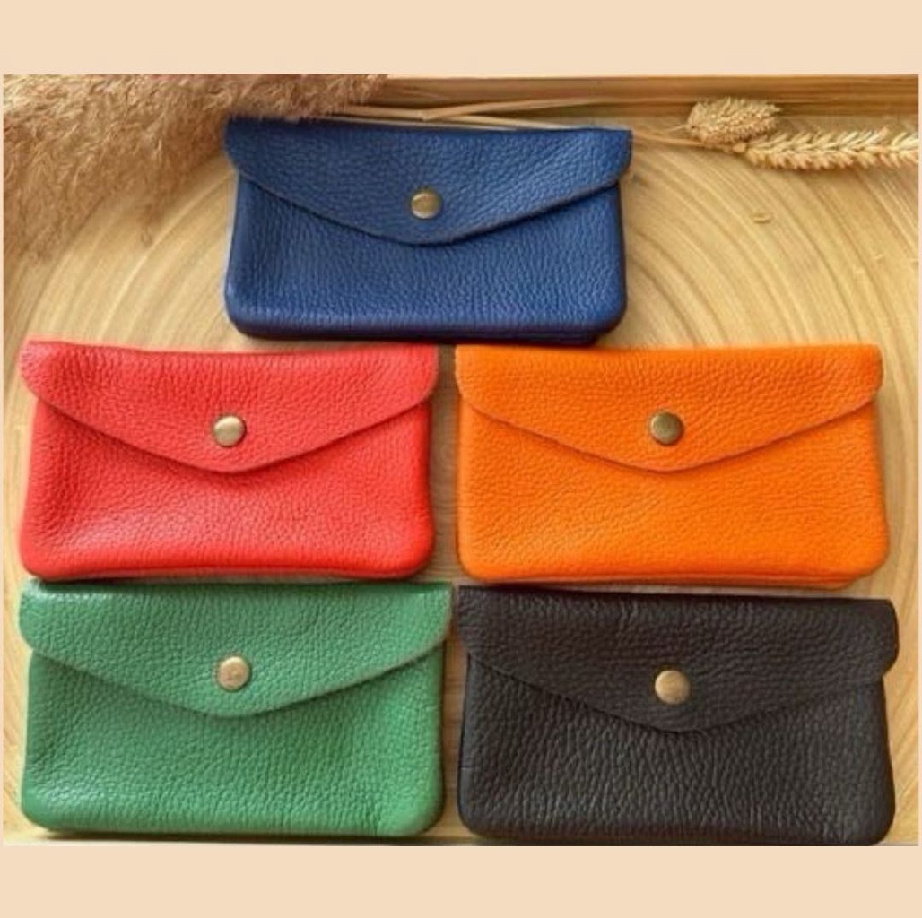 Porte monnaie en cuir avec à l’intérieur un compartiment zippée pour la monnaie et 2 compartiments pour billets ou CB. Dimensions : L15,5 x H 9 cm
