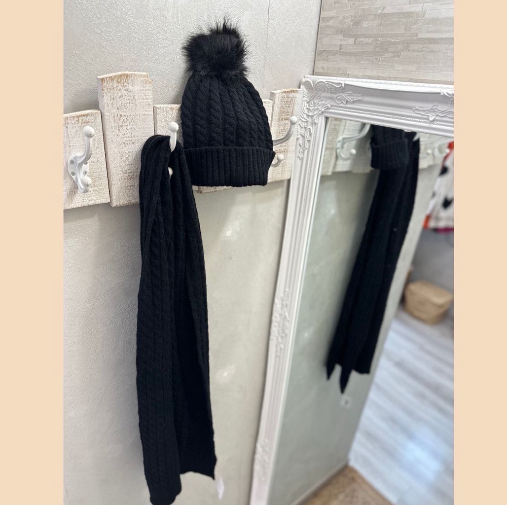 Enseble bonnet et echarpe. Matiere cotelée fine et extensible. Composition: 30% laine et 70% acrilique