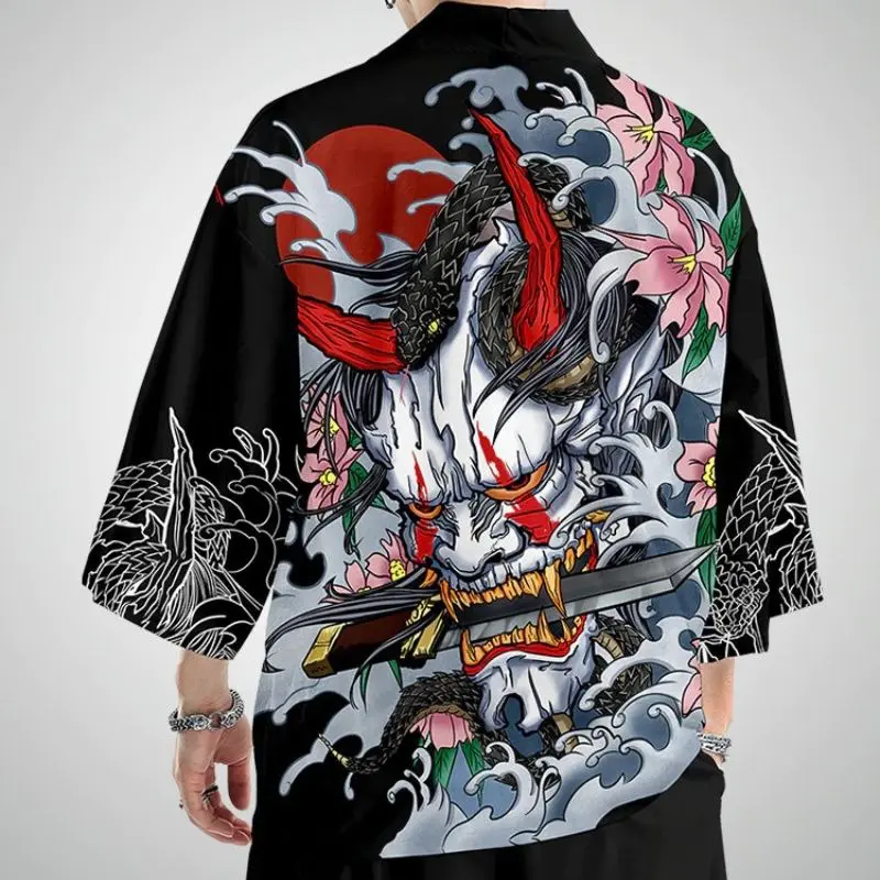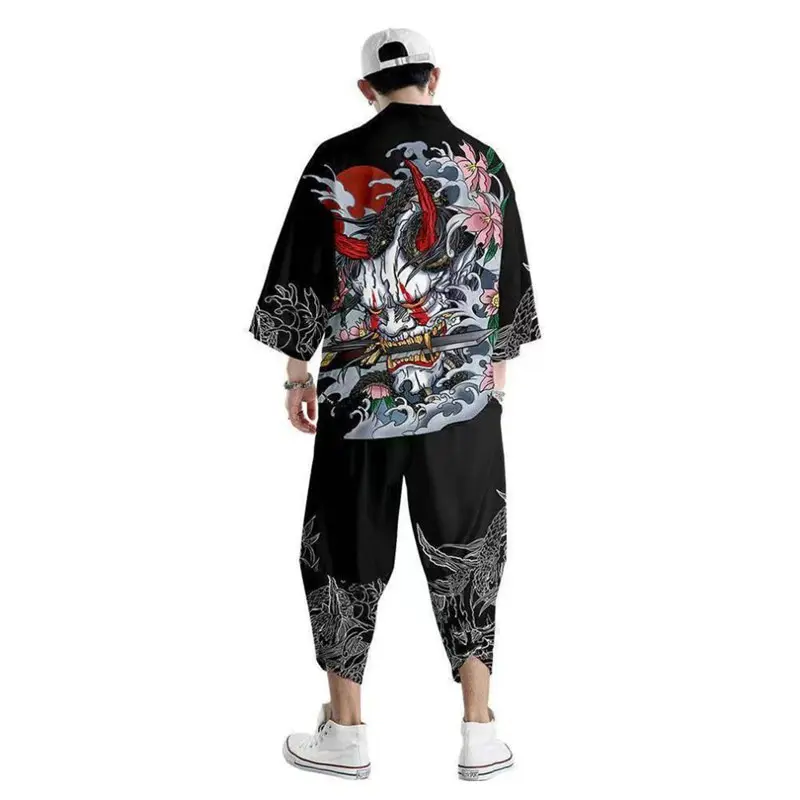 Ensemble veste & pantalon japonais pour homme avec un motif Hannya