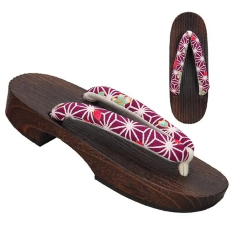 🔲 Motif Asanoha géométrique 💎 Bois de qualité artisanale 🎋 Lanières en tissu résistant 🛡️ Semelle antidérapante