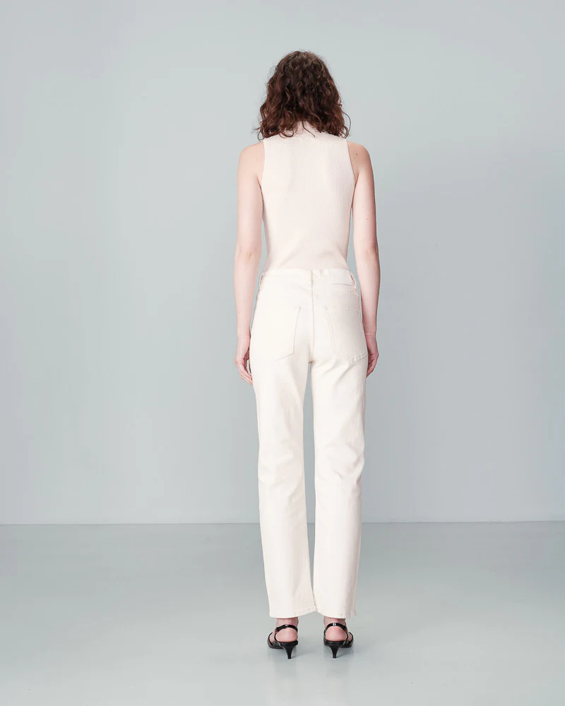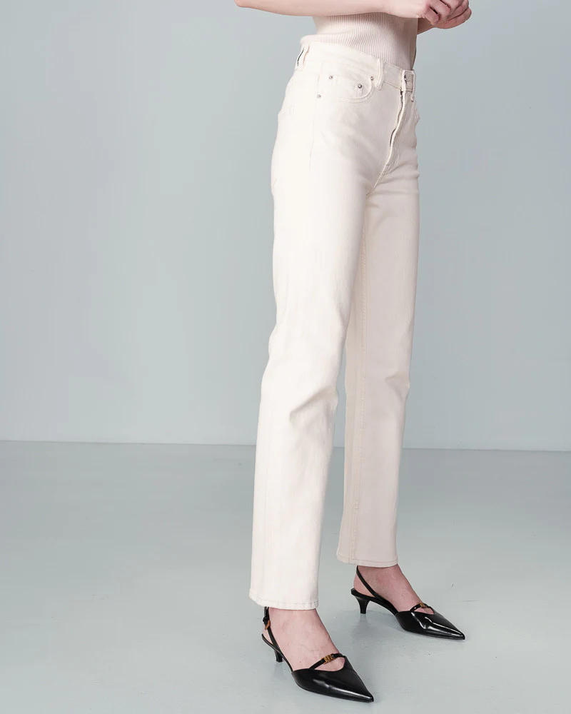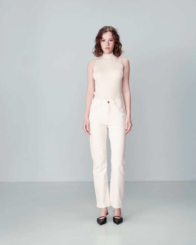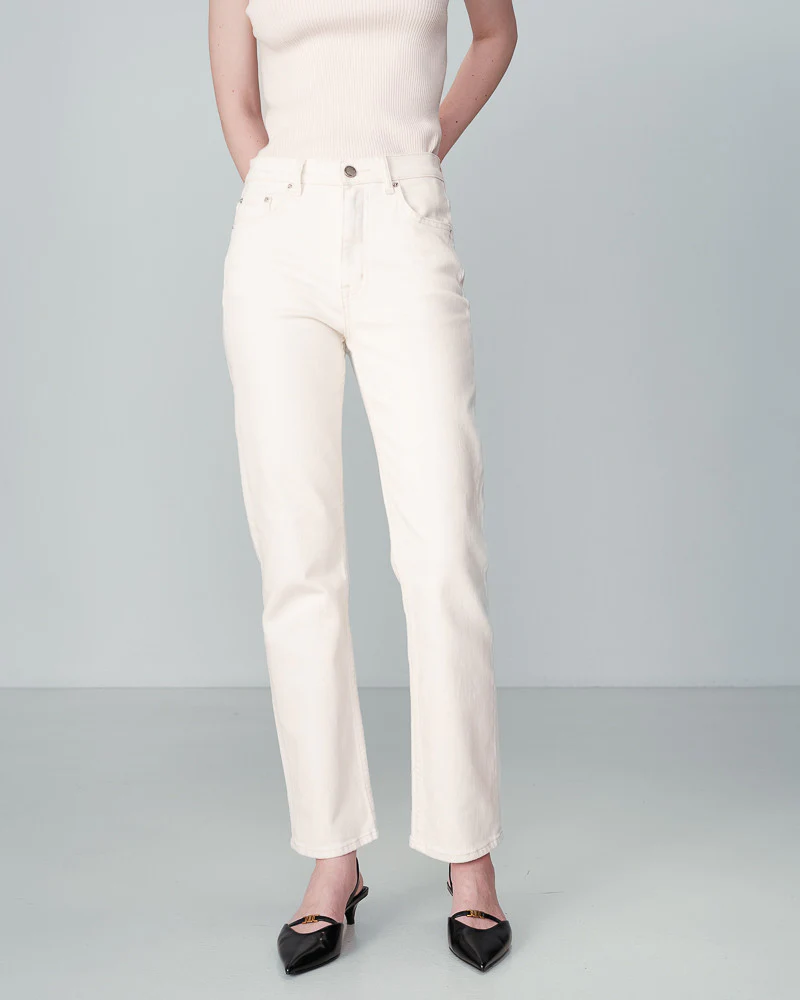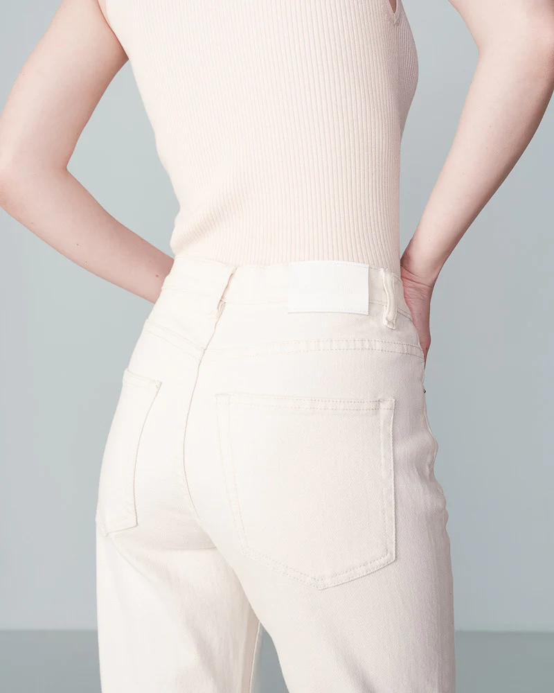 Le jean blanc 2015, confectionné en coton, s’invite dans les basiques de la collection. La coupe slim et la taille haute du jean dessinent une silhouette élégante et féminine. Le jean droit 2015 est agrémenté du jacron en cuir Grace & Mila. Ce modèle rejoint notre gamme en fibres naturelles ‘Un Brin de vert’.
