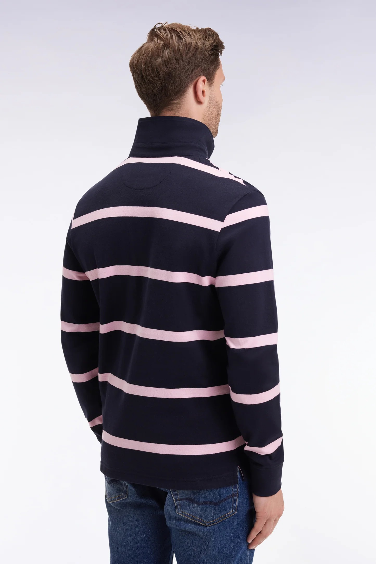 Description Ce maillot rugby en jersey de coton épais à fines rayures assure un confort optimal et un style graphique en toutes occasions. Son col maillot en twill contrasté met en valeur la silhouette pour une attitude sport-chic reconnaissable en un regard. Un essentiel polyvalent pour toutes les saison décliné dans un nouveau colorama de saison Jersey de coton épais Col twill Boutons rugby ovales siglés Coupe Regular droite Finitions bords-côtes Broderie emblème nœud papillon Composition et entretien Composition et entretien 100% COTON Lavage machine 30°C sur l’envers Laver avec des couleurs similaires Retirer de la machine dès la fin…