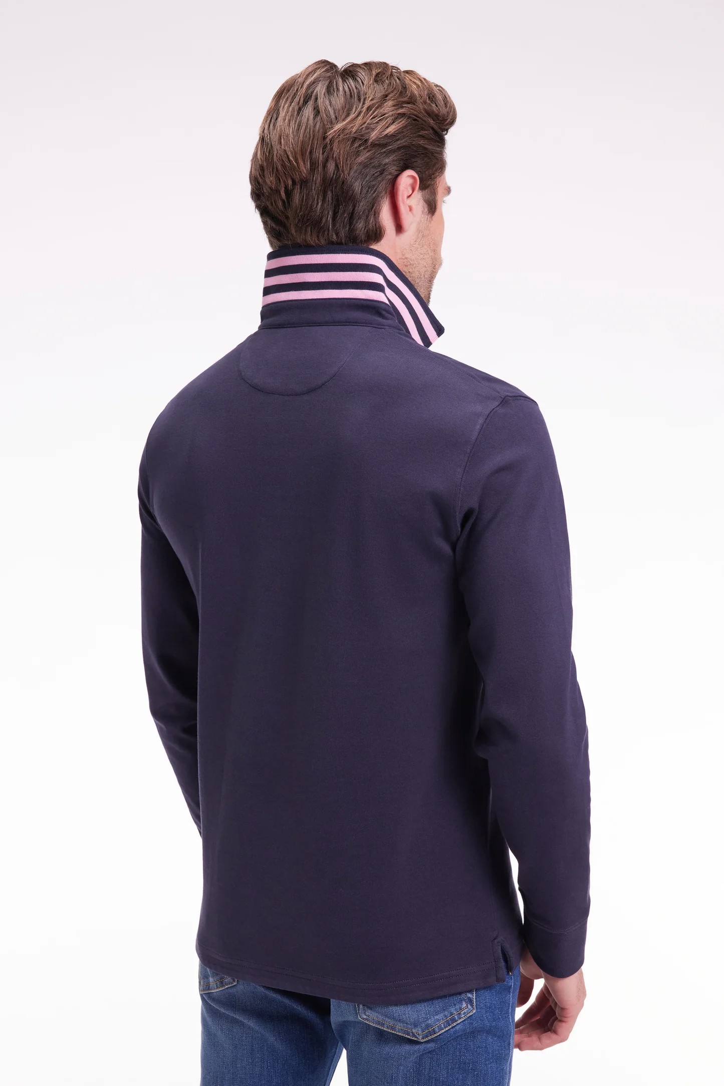 Maillot manches longues EDEN PARK en jersey marine dessous de col rayé 068R