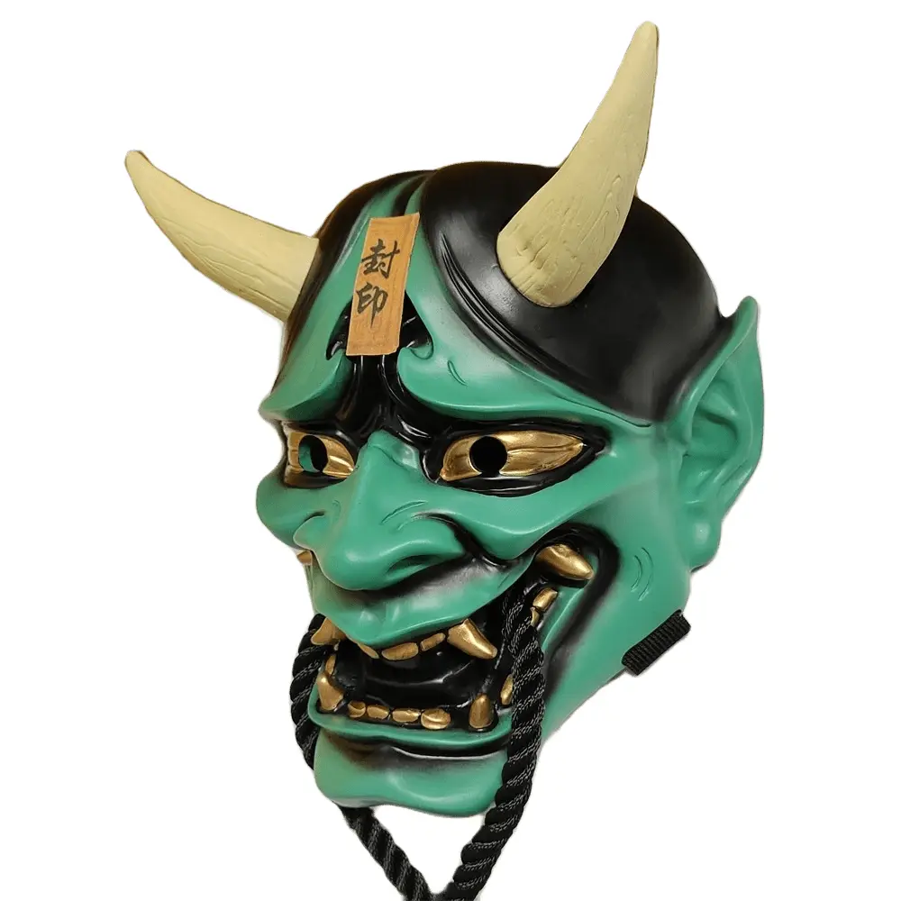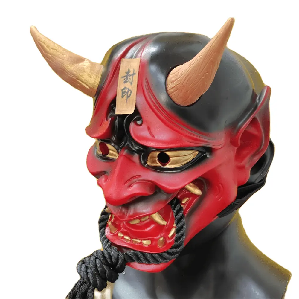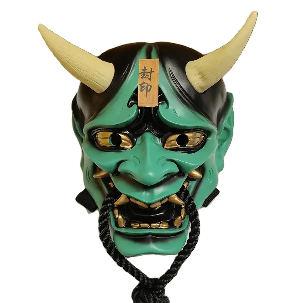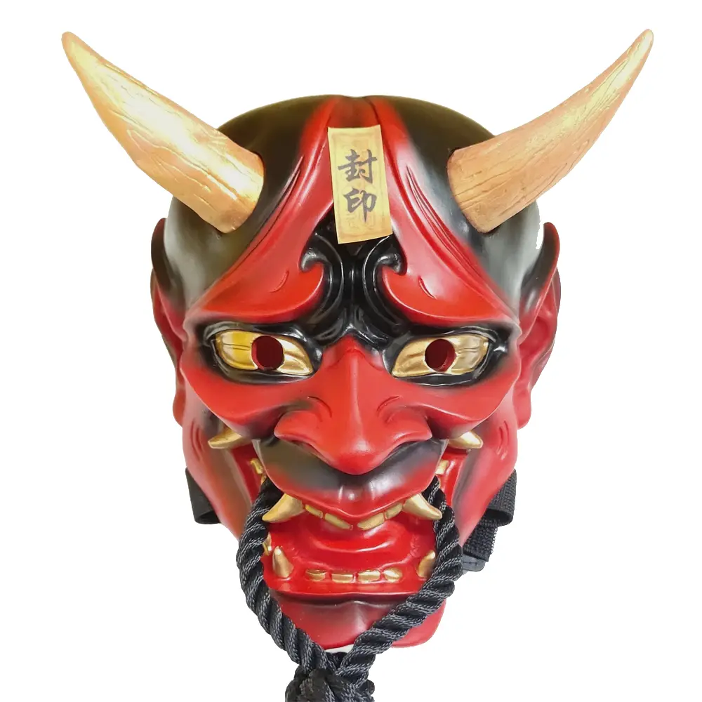 Découvrez le masque japonais démon Hannya avec corde qui incarne la puissance et la mystique des esprits vengeurs.