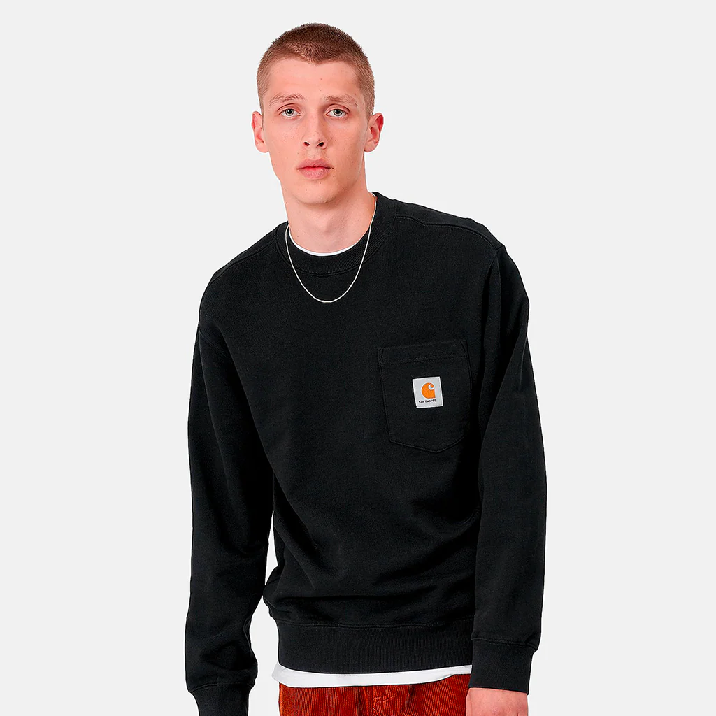 Le sweat Pocket Sweatshirt s’inspire du T-shirt éponyme mais est confectionné en jersey de coton lourd. Cet article présente une coupe ample, légèrement carrée, Il comporte une seule poche poitrine, avec l’étiquette Carhartt WIP et un col ras du cou. 100% Cotton Sweat, 13.3 ozColoris BlackRéférence, I027681_89_00