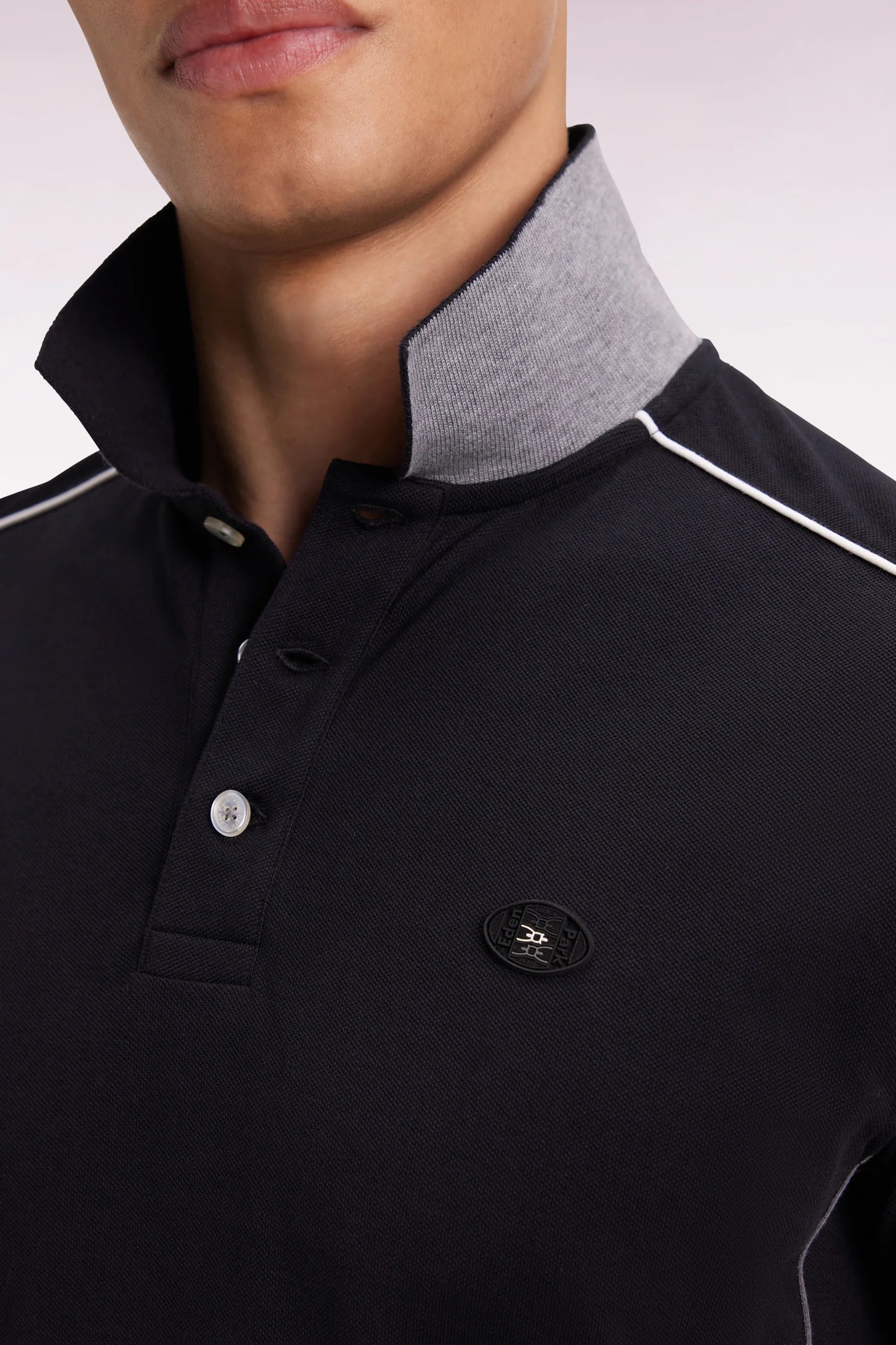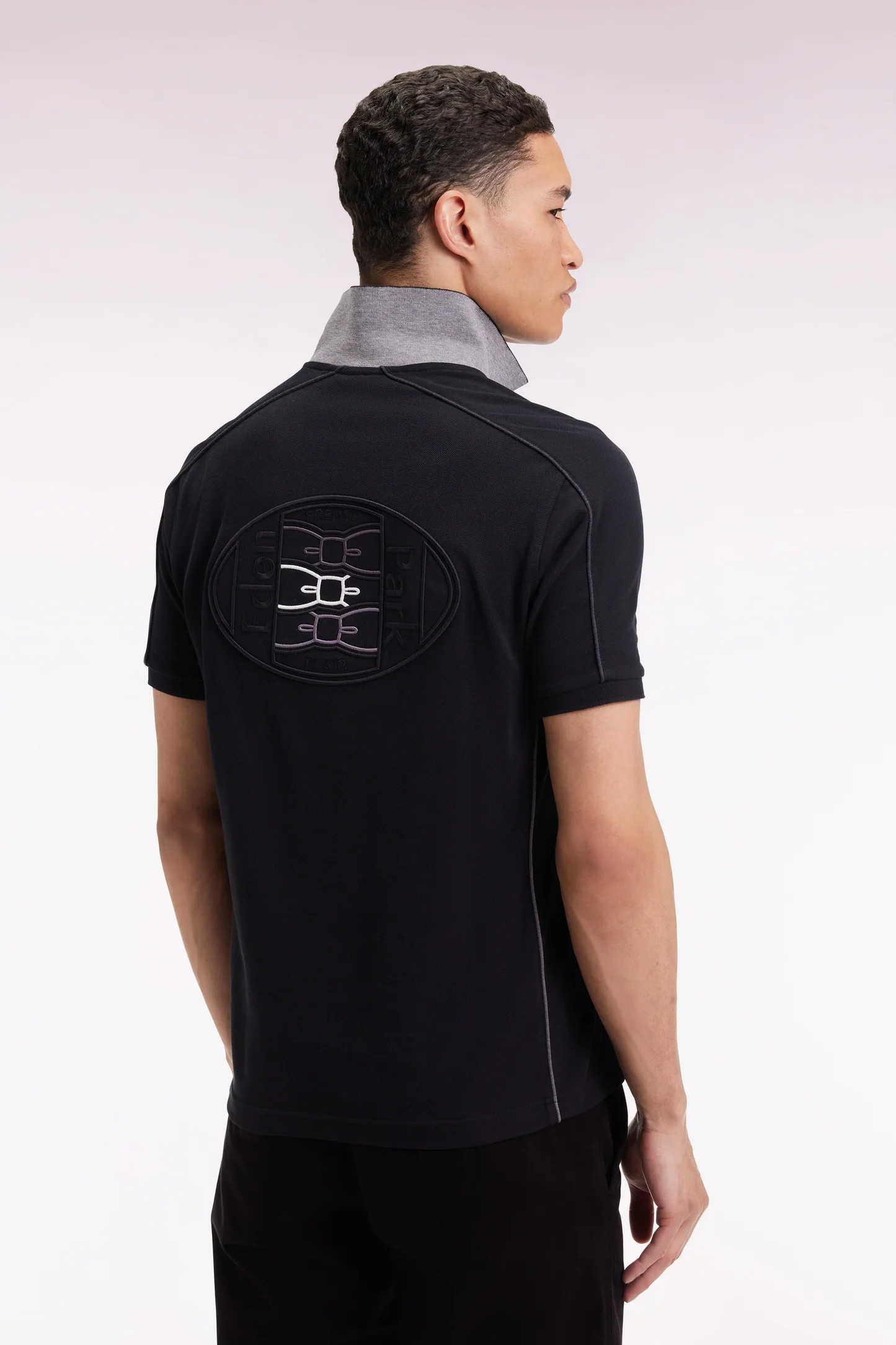 Polo à manches courtes EDEN PARK en piqué coton noir passepoils colorés 068X