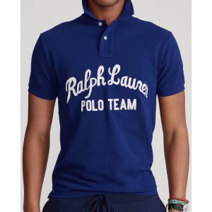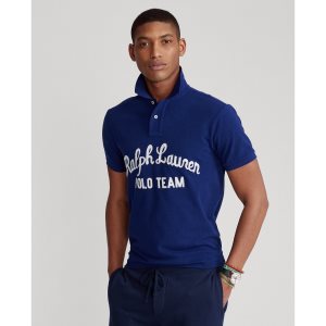 Coupe ajustée : silhouette située entre notre coupe classique et notre coupe cintrée. La manche moule le biceps. Ajusté au niveau de la taille. Taille M : longueur de corps avant de 68,6 cm, longueur de corps arrière de 71,1 cm, épaules de 44,4 cm et tour de poitrine de 104,1 cm. Col polo côtelé. Patte à deux boutons. Manches courtes avec bas de manches côtelés. Inscription « Ralph Lauren Polo Team » brodée au point de chaînette devant au milieu. Queue de tennis. Coton. Lavage en machine. Importé. Le mannequin mesure 1,85 m et porte une taille M.