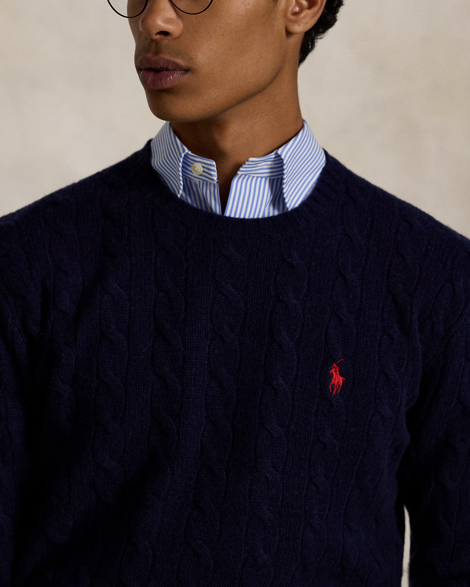 Cette version de notre emblématique pull torsadé est confectionnée dans un fil de laine italien tissé avec du cachemire. Détails Regular Fit : plus large au niveau de la poitrine, tout en conservant une silhouette moderne. Taille M : longueur de corps (avant et arrière) de 67,9 cm, épaules de 45,7 cm, tour de poitrine de 105,4 cm et longueur de manche de 64,1 cm. Col rond. Manches longues avec poignets côtelés. Ourlet côtelé. Poney distinctif brodé sur la poitrine à gauche. 90 % laine, 10 % cachemire. Lavage à la main ou nettoyage à sec. Importé. Le mannequin mesure 1,85 m et porte une taille M.