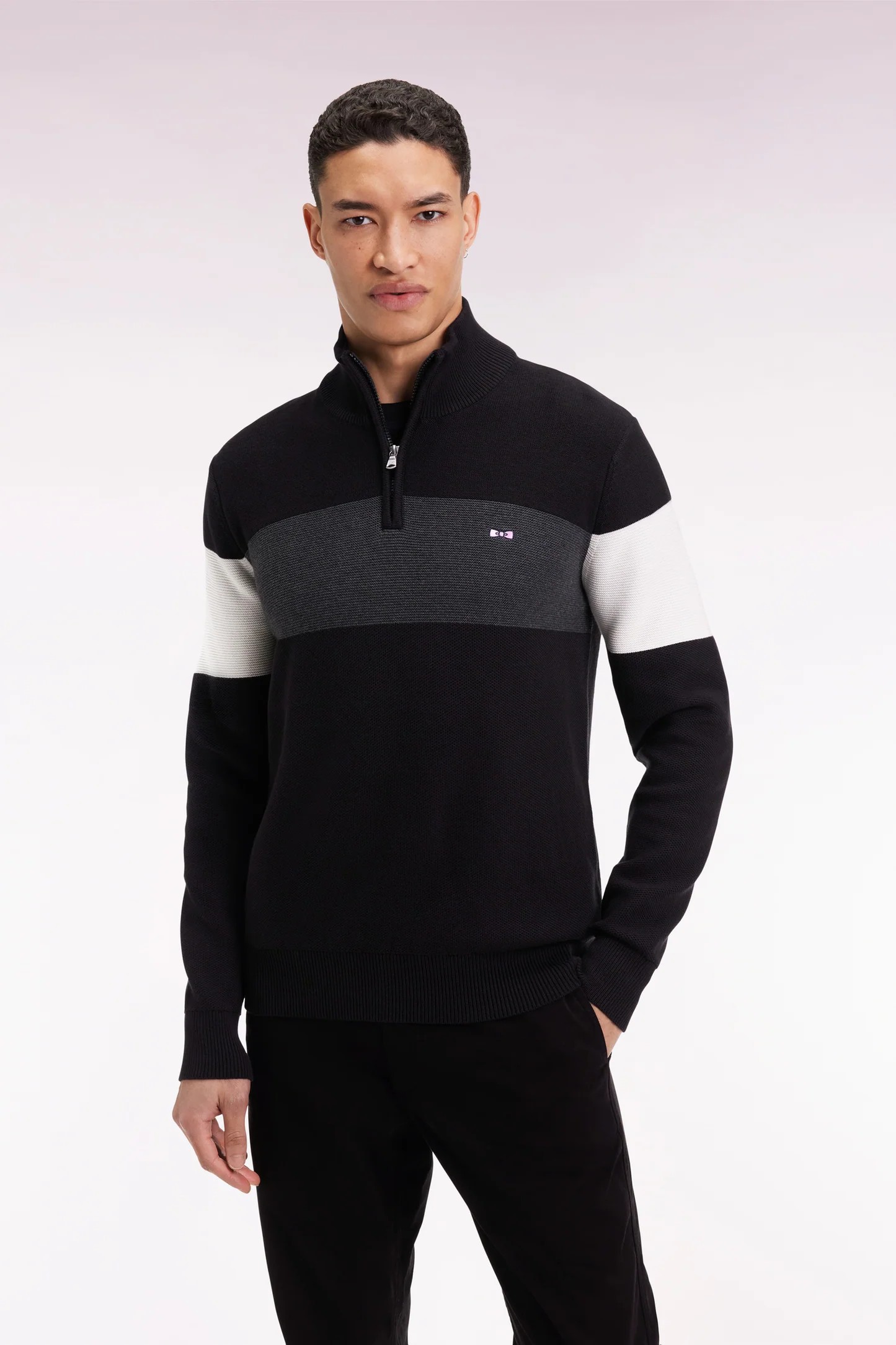 Pull col camionneur EDEN PARK en coton noir broderie dos 069J