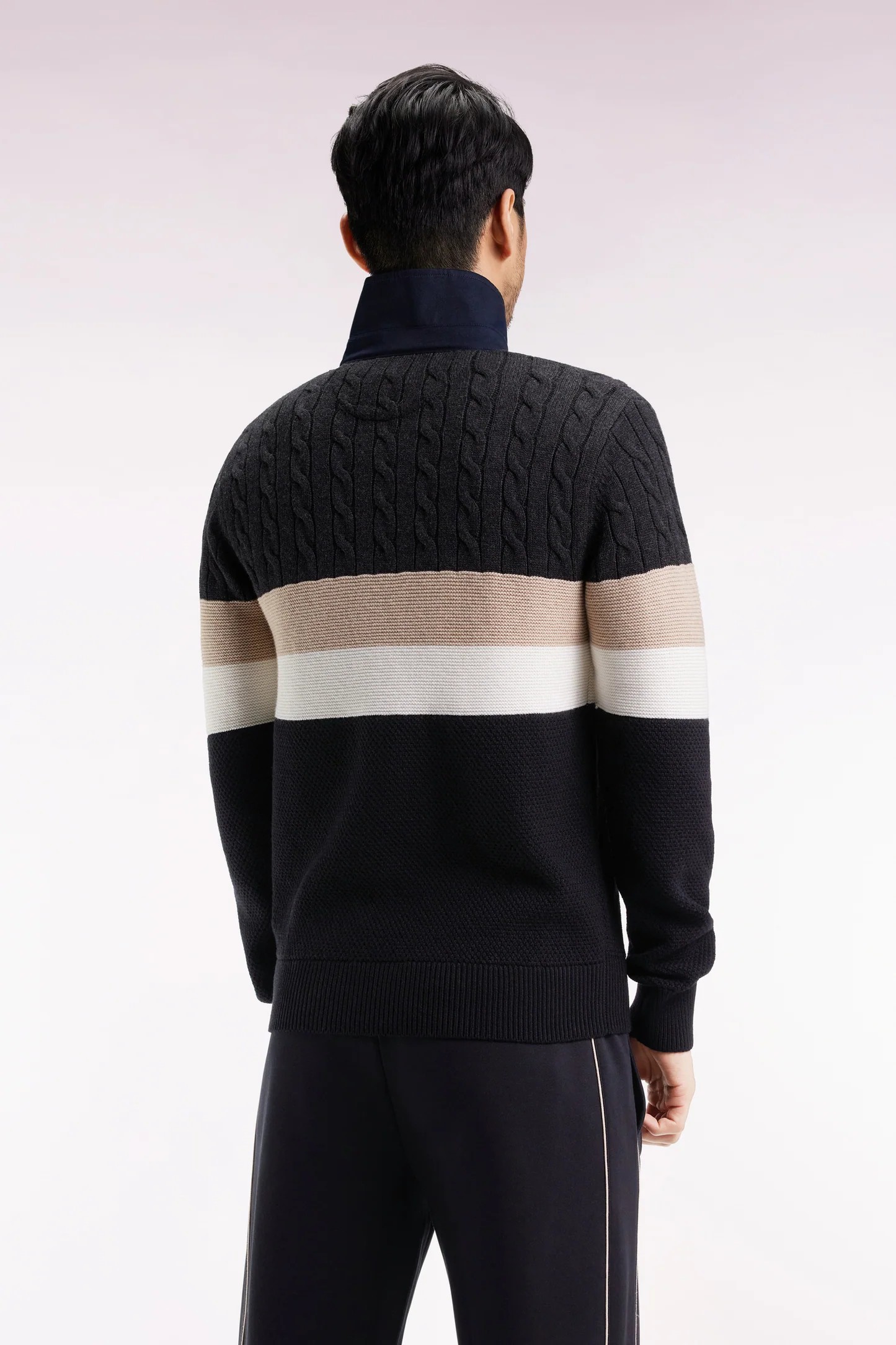 Pull col maillot EDEN PARK en laine et coton torsadé noir et gris 069E
