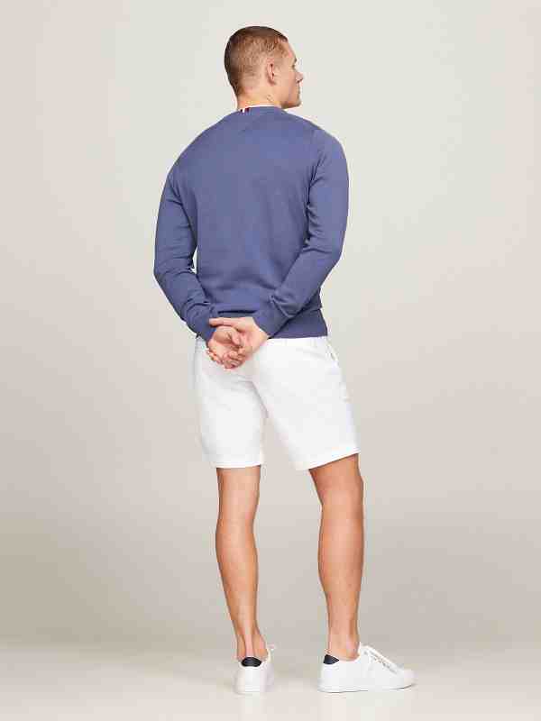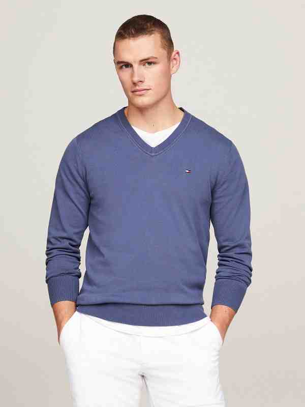 Caractéristiques Inspirée de l’année au cours de laquelle Tommy Hilfiger a créé sa marque éponyme, notre collection 1985 réinvente les classiques des archives à l’aide de matières écoresponsables. Ce pull à col en V polyvalent est en pur coton bio. Il présente des bords côtelés lui assurant une coupe classique. Points forts • Pur coton bio • 1985 Collection • Col en V • Col, poignets et ourlet côtelés • Détail emblématique à l’arrière du col • Branding Tommy Hilfiger • Drapeau Tommy Hilfiger brodé sur la poitrine Coupe et taille • Standard • Le modèle mesure 1m86 et porte…