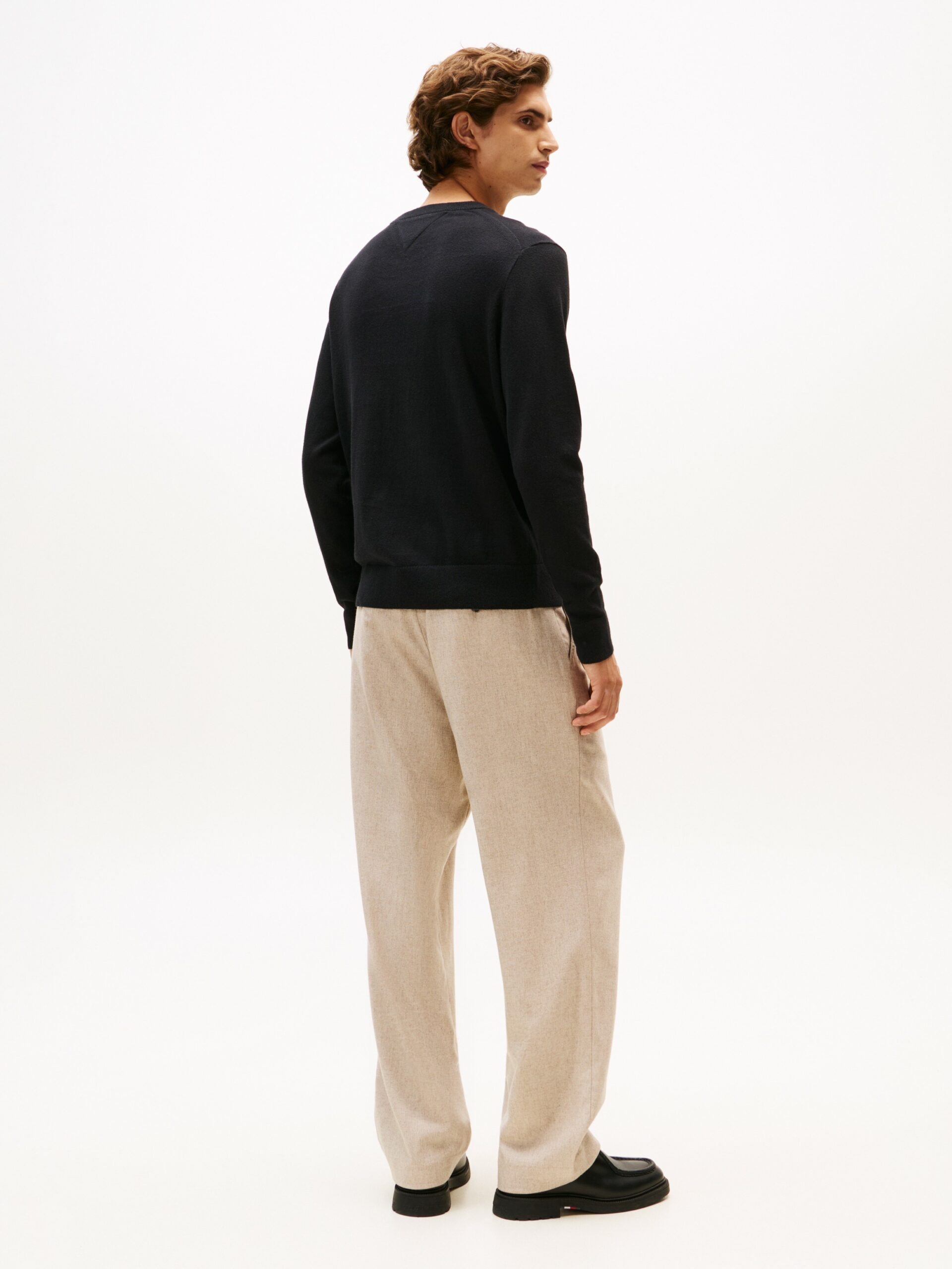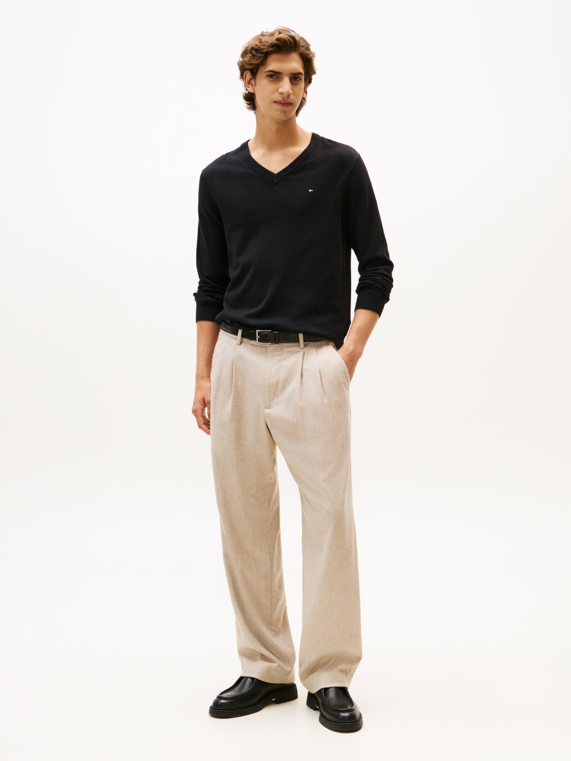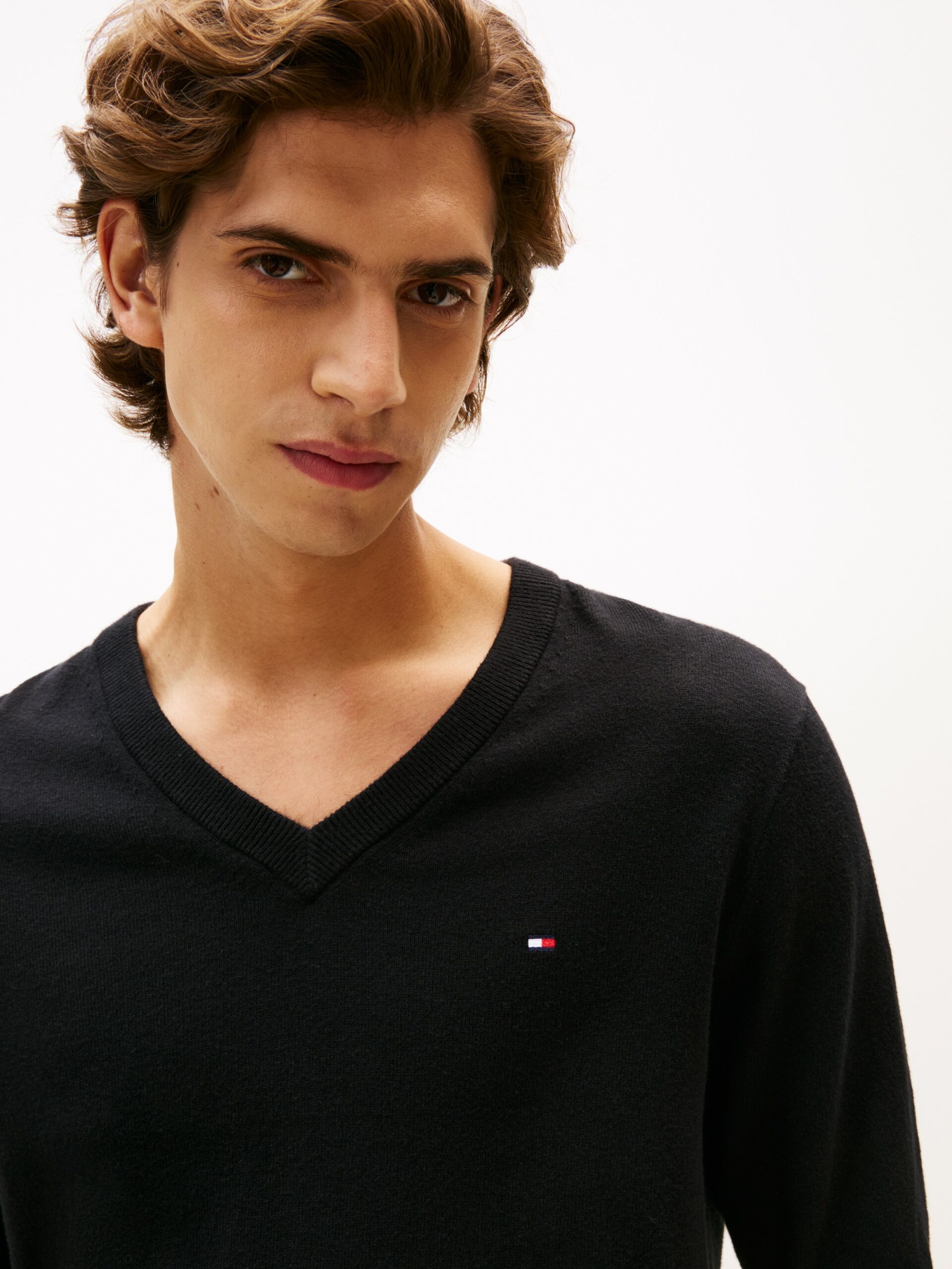 Caractéristiques Envie d’apporter une touche de luxe à votre collection de pièces en maille ? Optez pour ce pull à col en V réalisé dans un mélange de coton Pima et de cachemire. Points forts • Coton Pima et cachemire • Col en V • Col, poignets et ourlet côtelés • Bande emblématique à l’intérieur du col • Branding Tommy Hilfiger • Drapeau Tommy Hilfiger brodé sur la poitrine Coupe et taille • Standard • Le modèle mesure 1m86 et porte une taille M Composition et entretien • 92 % coton, 8 % cachemire