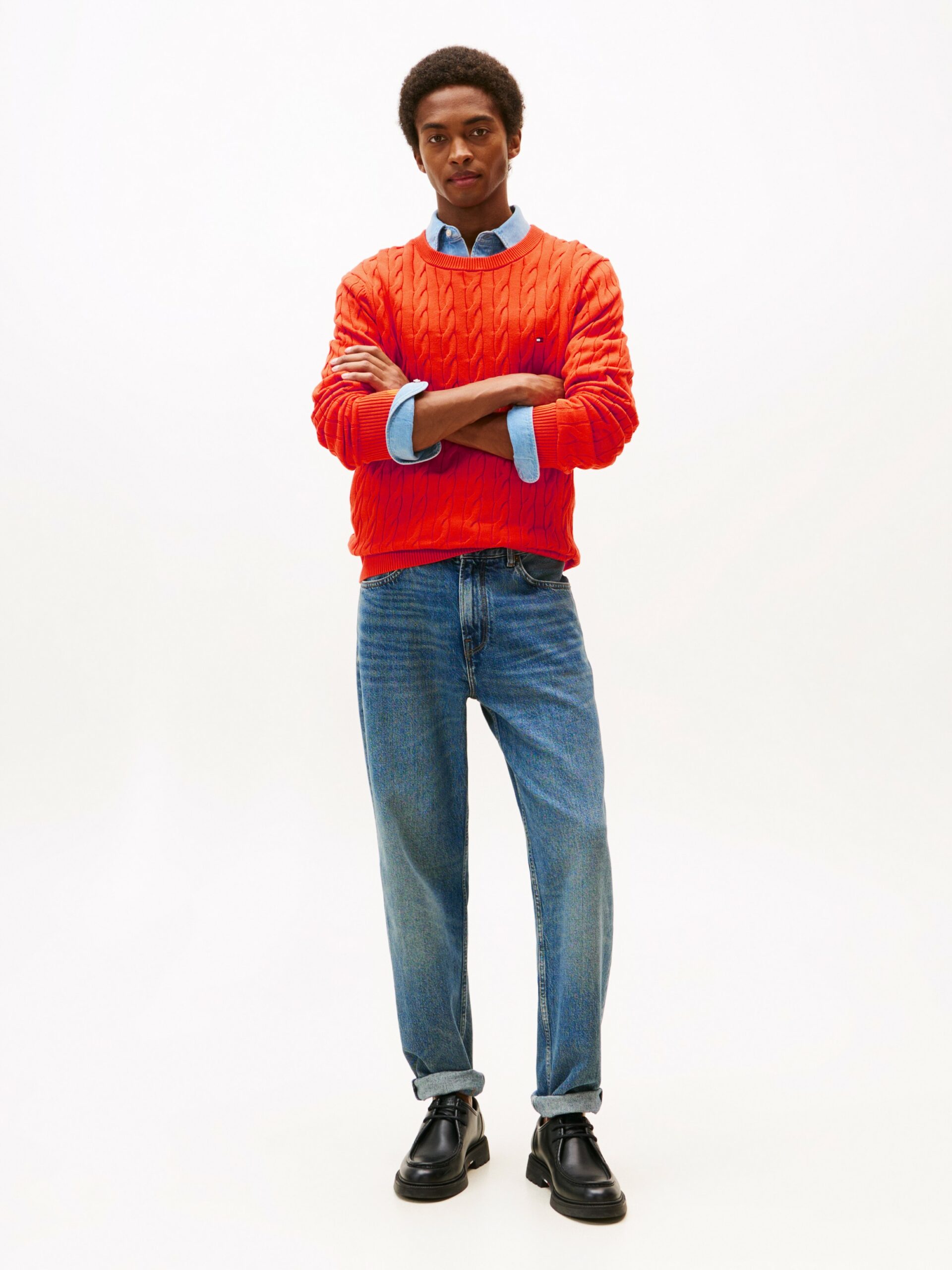 Caractéristiques Ce pull à col ras-du-cou affiche une élégante maille torsadée. Il apportera une note classique à votre collection de pulls. Points forts • Pur coton peigné • Maille torsadée • Col ras-du-cou décontracté • Col, poignets et ourlet côtelés • Bande emblématique à l’intérieur du col • Branding Tommy Hilfiger • Drapeau Tommy Hilfiger brodé sur la poitrine Coupe et taille • Standard • Épaules légèrement tombantes • Le modèle mesure 1m86 et porte une taille M Composition et entretien • 100 % coton