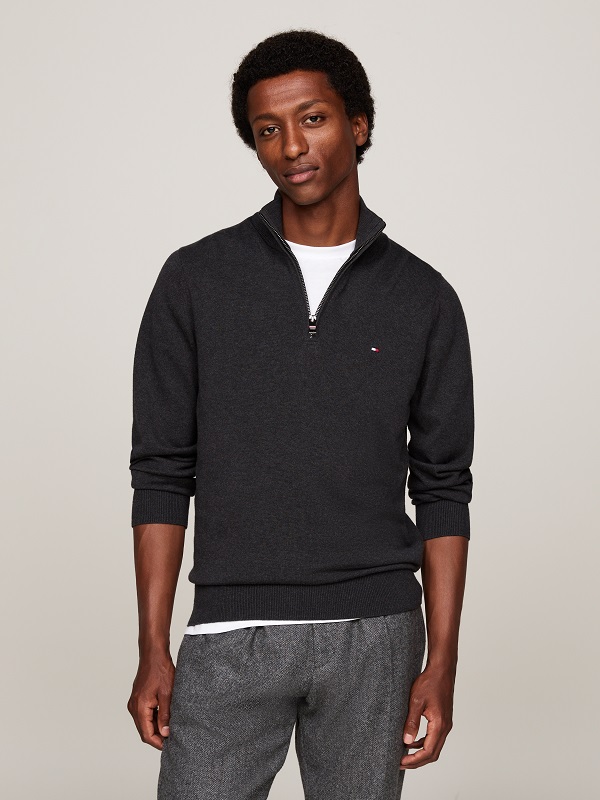 Caractéristiques Ce pull en coton Pima majoritaire est rehaussé d’une touche de cachemire pour associer luxe et douceur. Points forts • Mélange de coton Pima et de cachemire • Maille tricot • Col cheminée • Demi-fermeture Éclair • Col, poignets et ourlet côtelés • Branding Tommy Hilfiger • Drapeau Tommy Hilfiger brodé sur la poitrine Coupe et taille • Standard • Le modèle mesure 1m86 et porte une taille M Composition et entretien • 95 % coton, 5 % cachemire