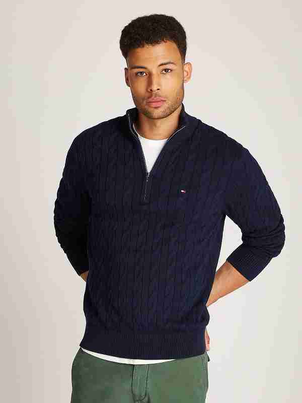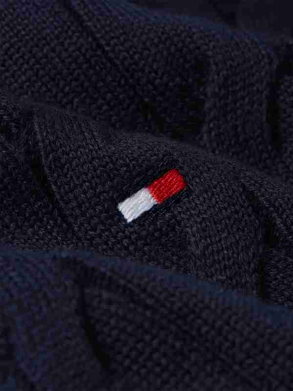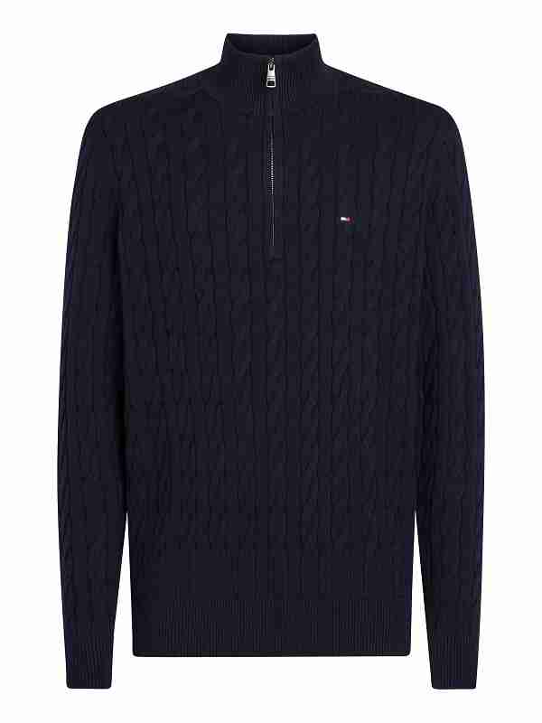 Caractéristiques Complétez votre garde-robe avec ce pull tendance, alliant style traditionnel et détails sportifs. Points forts • Pur coton • Maille torsadée • Col cheminée • Demi-fermeture Éclair • Col, poignets et ourlet côtelés • Branding Tommy Hilfiger • Drapeau Tommy Hilfiger brodé sur la poitrine Coupe et taille • Standard • Le modèle mesure 1m86 et porte une taille M Composition et entretien • 100 % coton