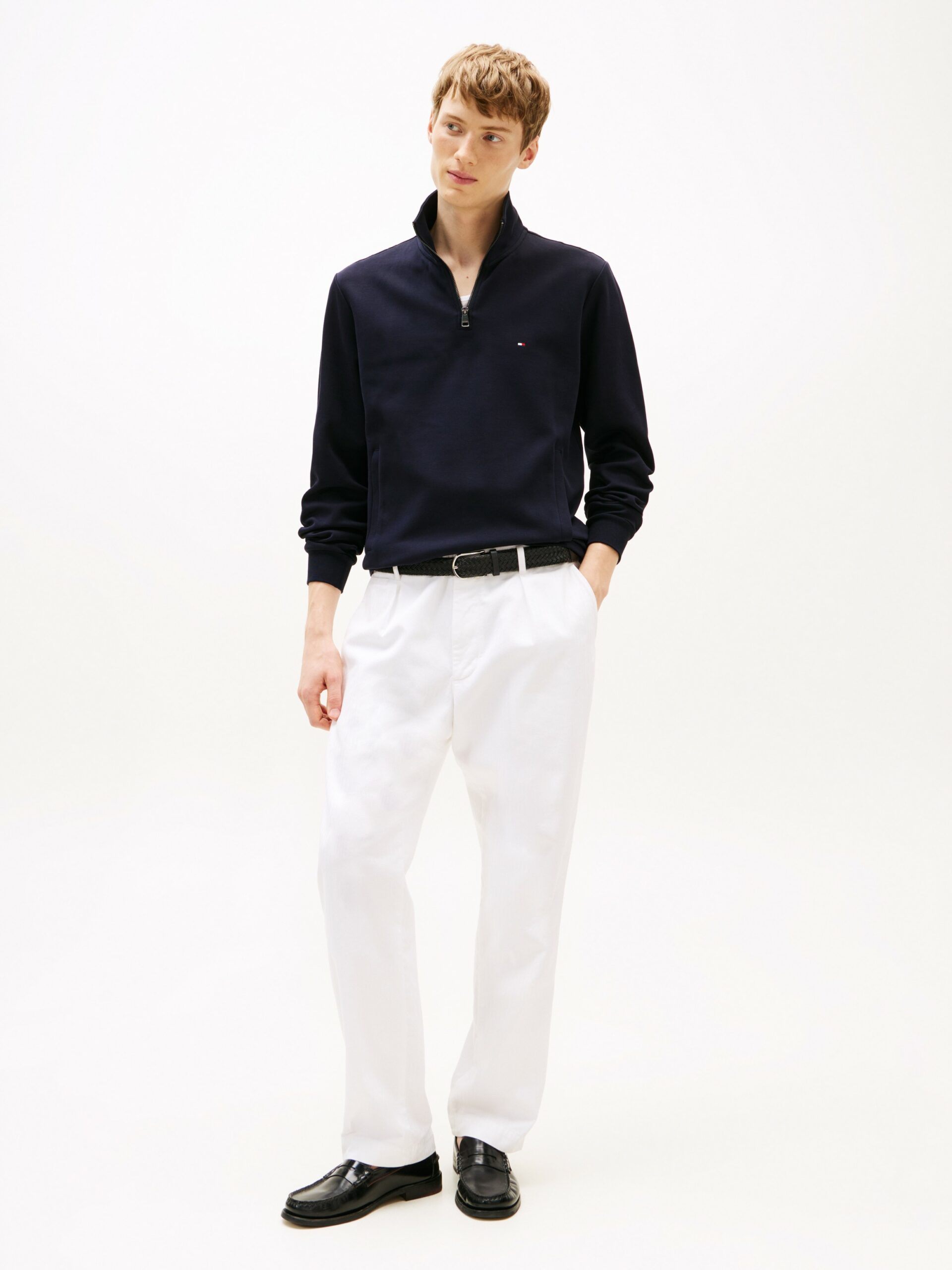 Caractéristiques Ce pull tendance à quart de zip est conçu dans un tissu innovant aux propriétés de séchage rapide qui vous permet de rester au frais. Points forts • Coton mélangé • Maille technique • Séchage rapide • Fermeture Éclair quart de longueur • Col entonnoir • Deux poches passepoilées à l’avant • Bande emblématique à l’intérieur du col • Branding Tommy Hilfiger • Drapeau Tommy Hilfiger brodé sur la poitrine Coupe et taille • Standard • Épaules légèrement tombantes • Le modèle mesure 1m86 et porte une taille M Composition et entretien • 72 % coton, 28 % polyester…