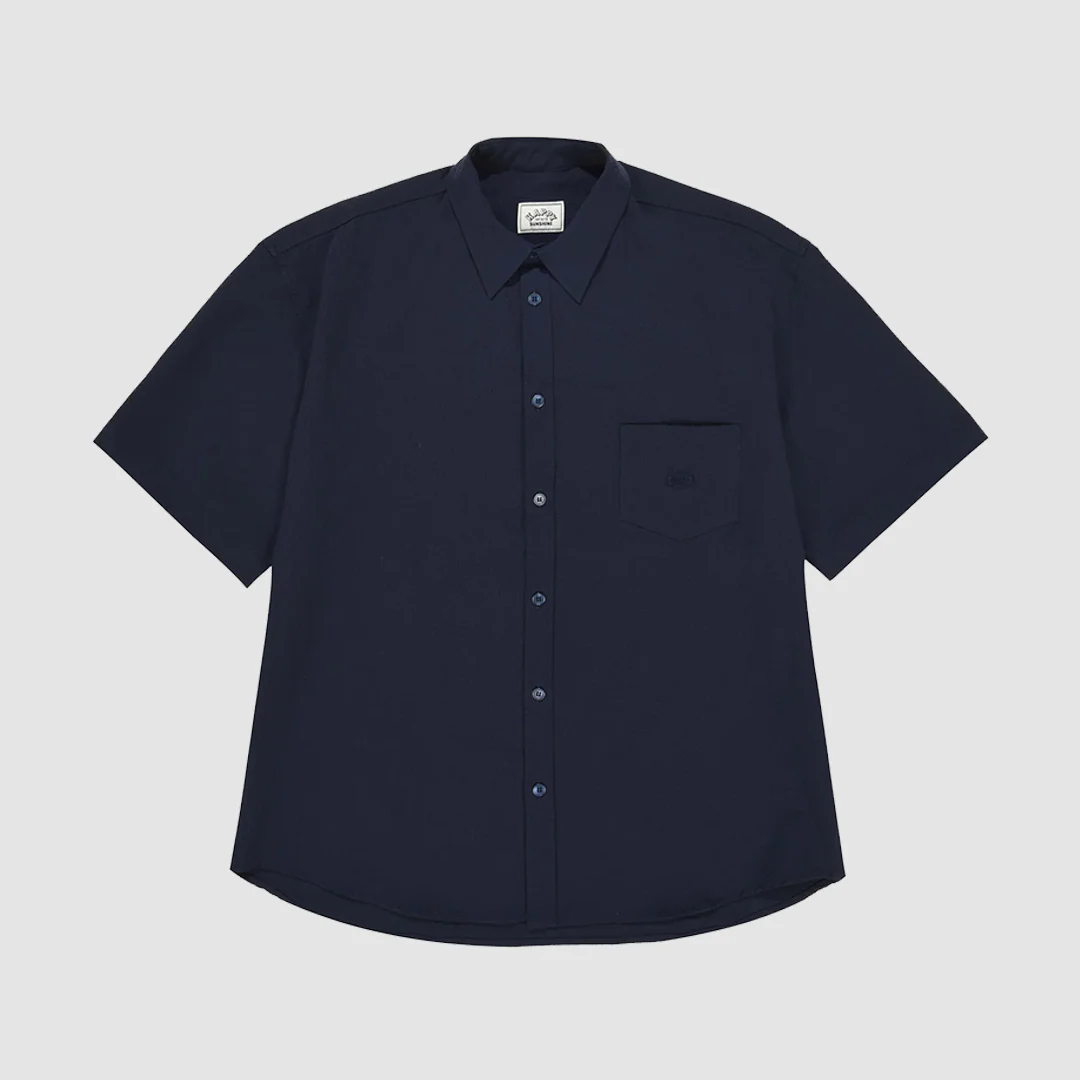 Relaxed Seersucker Half Shirt Navy