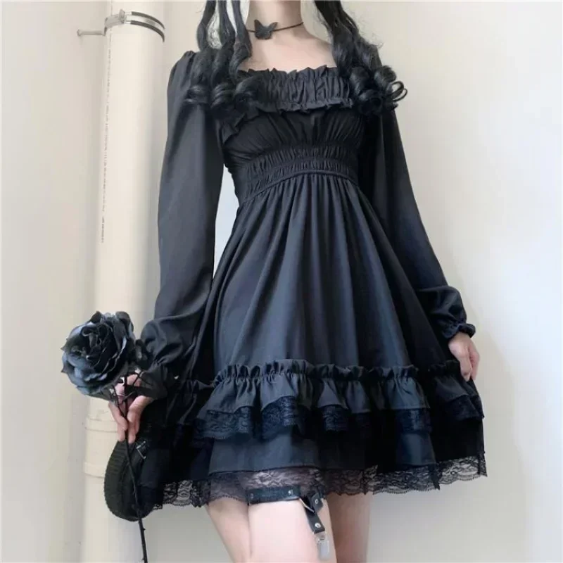 Imaginez-vous porter cette robe noire gothique, la dentelle délicate et les matériaux de qualité offrant un confort et une allure élégante. Avec son col carré, cette robe sublime votre silhouette avec une élégance sombre et captivante.