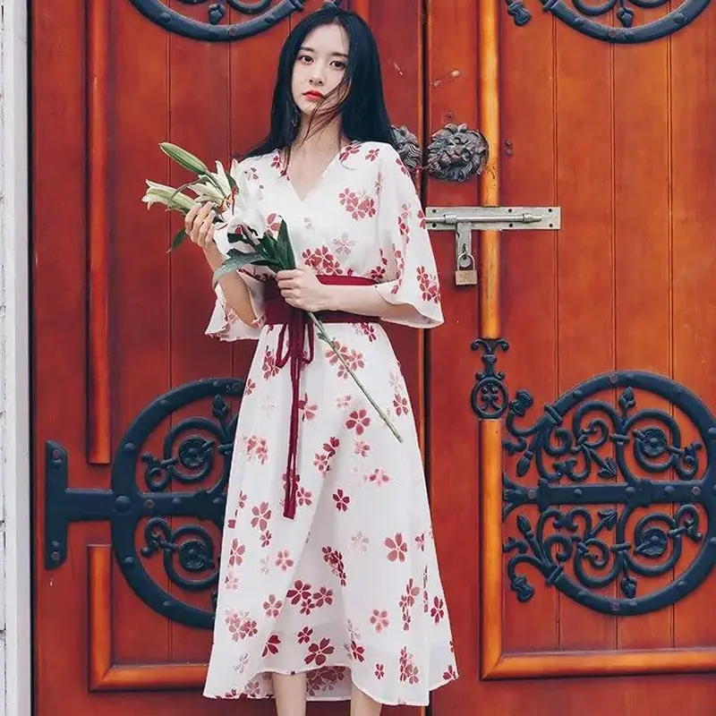 Imaginez-vous portant cette robe blanche, confectionnée en polyester, offrant ainsi un confort optimal et une sensation de légèreté. La longueur mi-mollet et le style japonais unique subliment votre silhouette de manière gracieuse.