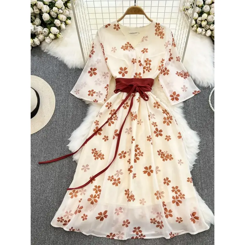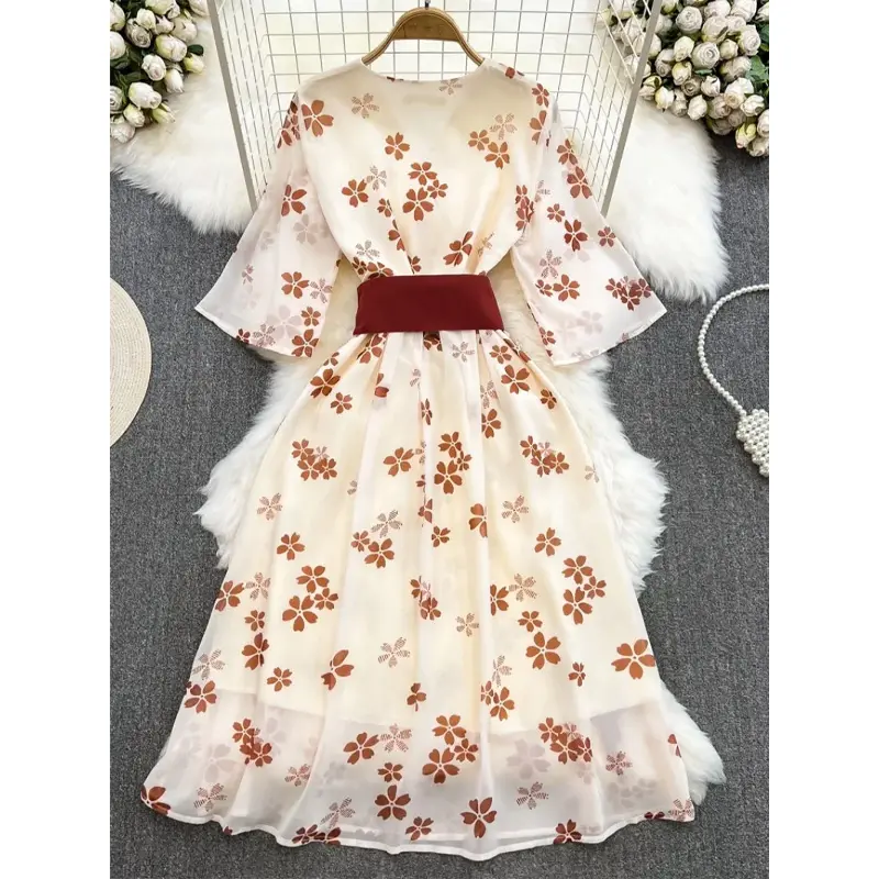 Plongez dans l’élégance florale de notre robe japonaise longue sakura. Son motif sakura délicat et son col en V apportent une touche de charme et de raffinement à cette tenue.