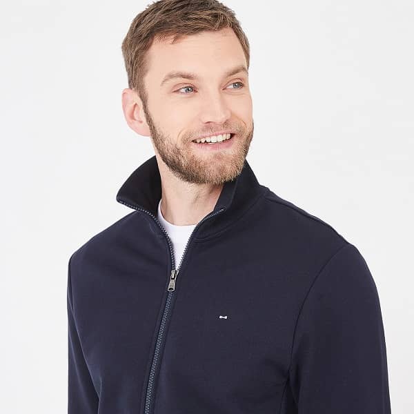 Un molleton de coton doux et confortable compose ce sweatshirt zippé. Col enveloppant et broderie signature ton sur ton au dos complètent le modèle. Pour un total look sportswear, portez-le avec son pantalon de jogging assorti. Molleton de coton Regular fit Col camionneur bord-côte zippé Fermeture zippée Broderie Eden Park latérale bas du dos Logo nœud papillon brodé poitrine.