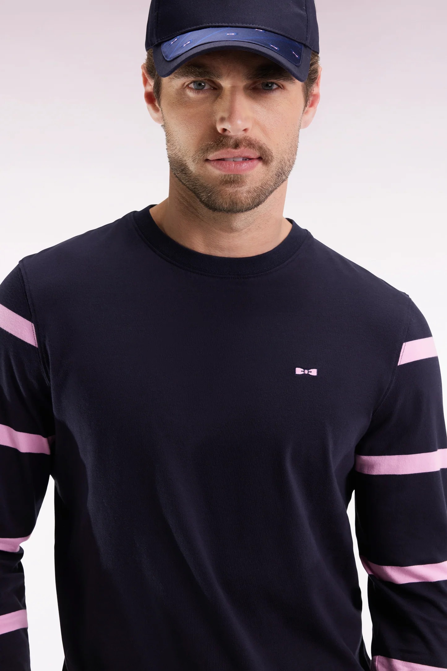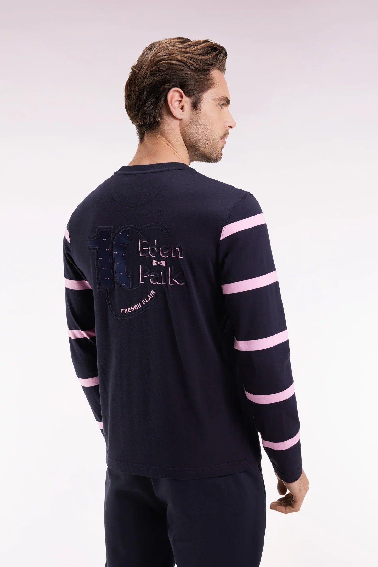 T-shirt à manches longues EDEN PARK en coton marine à manches rayées 069U