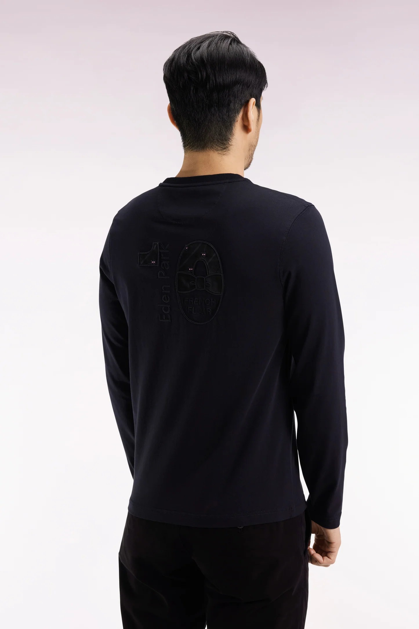 T-shirt col rond EDEN PARK à manches longues en coton noir 069T