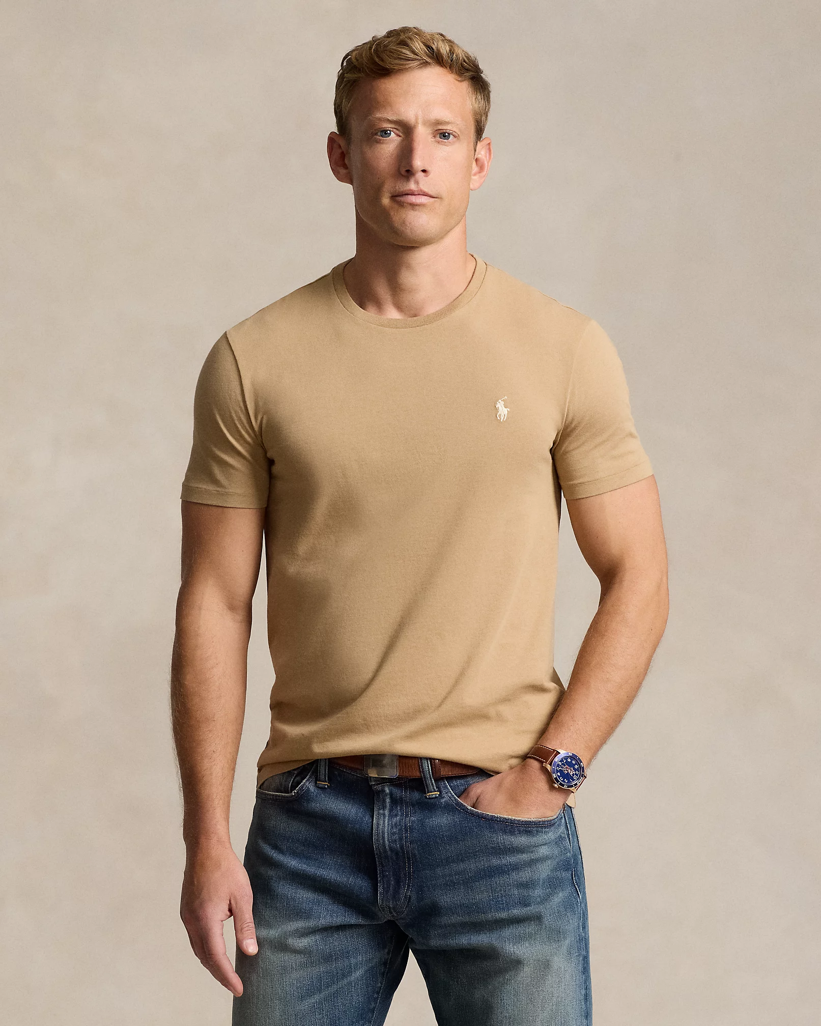 Ce t-shirt en coton, lavé pour obtenir un toucher et un aspect usés, est un basique Polo dont vous ne vous lasserez pas. Détails Coupe ajustée : légèrement ajustée sur la poitrine et la taille. Taille M : longueur de corps (avant et arrière) de 69,8 cm, épaules de 45,1 cm et tour de poitrine de 99,1 cm. Col rond. Manches courtes. Poney distinctif brodé sur la poitrine à gauche. 100 % coton. Lavage en machine. Importé. Le mannequin mesure 1,85 m et porte une taille M.